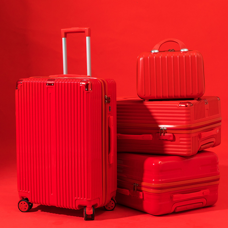 赤いスーツケース、結婚用革製スーツケース、母の嫁入り用スーツケース、ローラースーツケース、結婚式、ウェディング、嫁入り物、パスワード付きスーツケース、旅行用バッグ