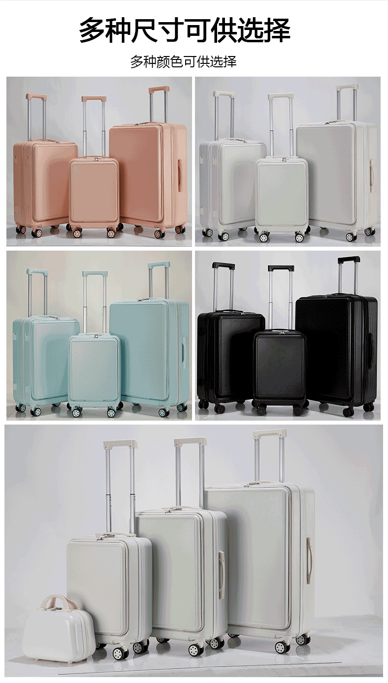 フロントオープンジッパー付きスーツケース 20inchluggage 旅行用バッグ 24inch ローリングスーツケース 28inch セット 大容量