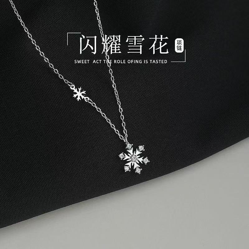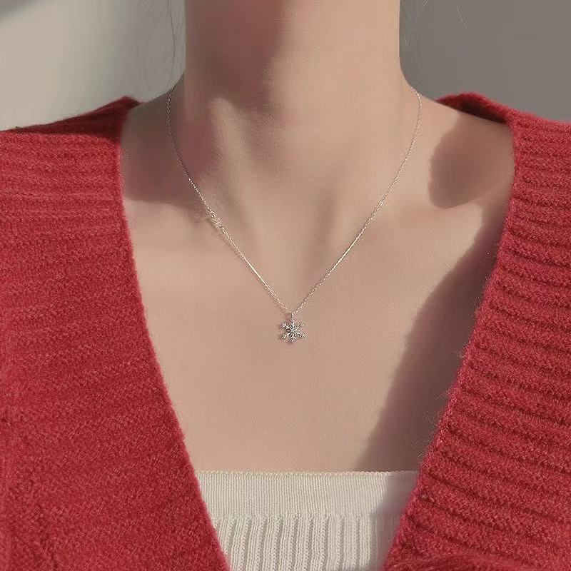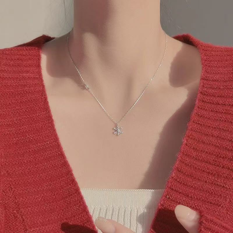 跨境圣诞节雪花项链女轻奢高级感小众设计气质简约百搭锁骨链礼物