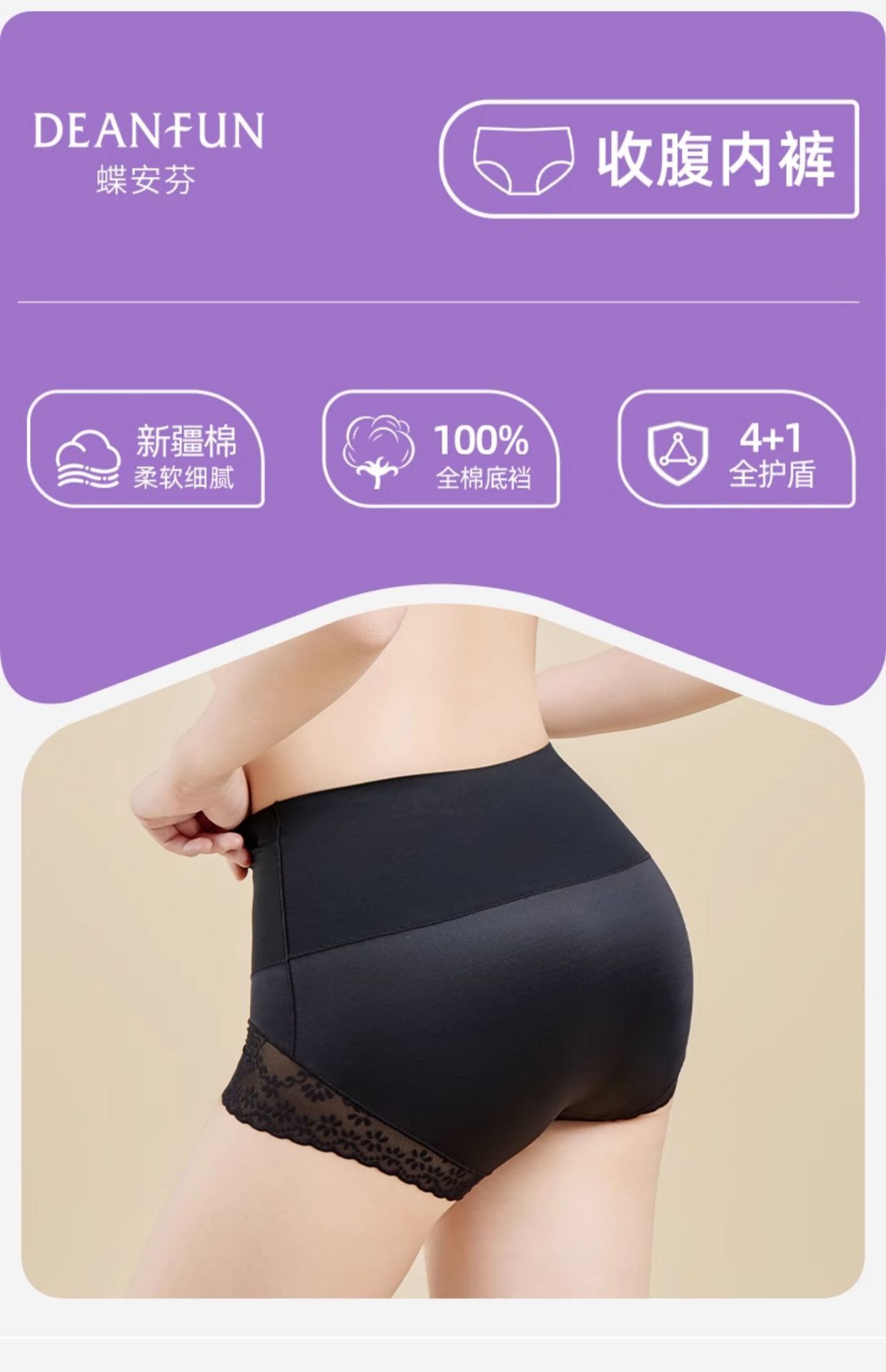 蝶安芬棉质内裤女士舒适暖姜收腹10A抗菌裆中高腰绒感棉三角裤头