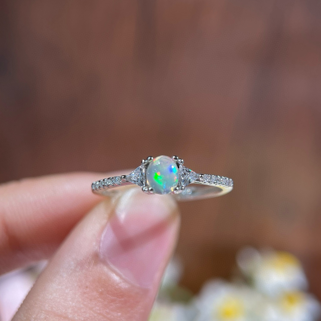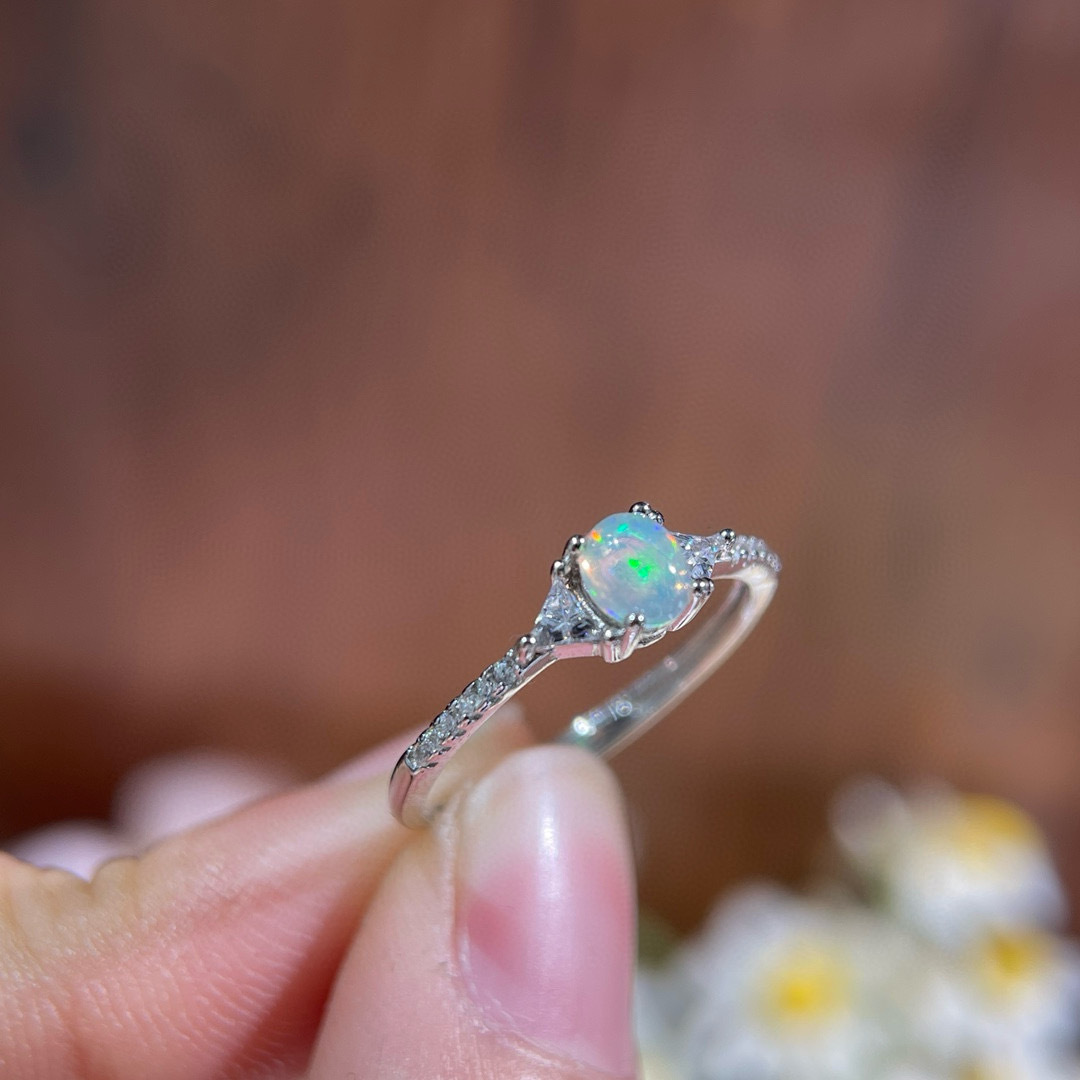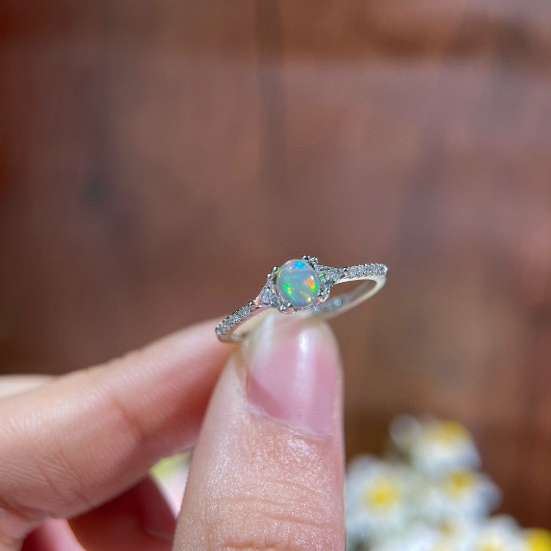 纯天然超美欧泊戒指 😝手工精心选料[色]颜色美,晶体好,火彩满满的!造型和工艺绝对惊艳~衬的皮肤格外白皙❤️实物美到没朋友!925银精工镶嵌,主石4*5天然欧泊支持检测!💰38/枚