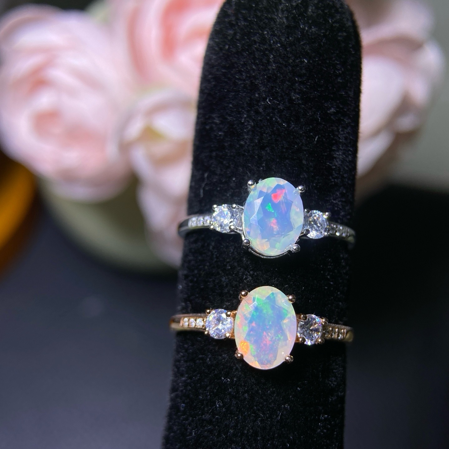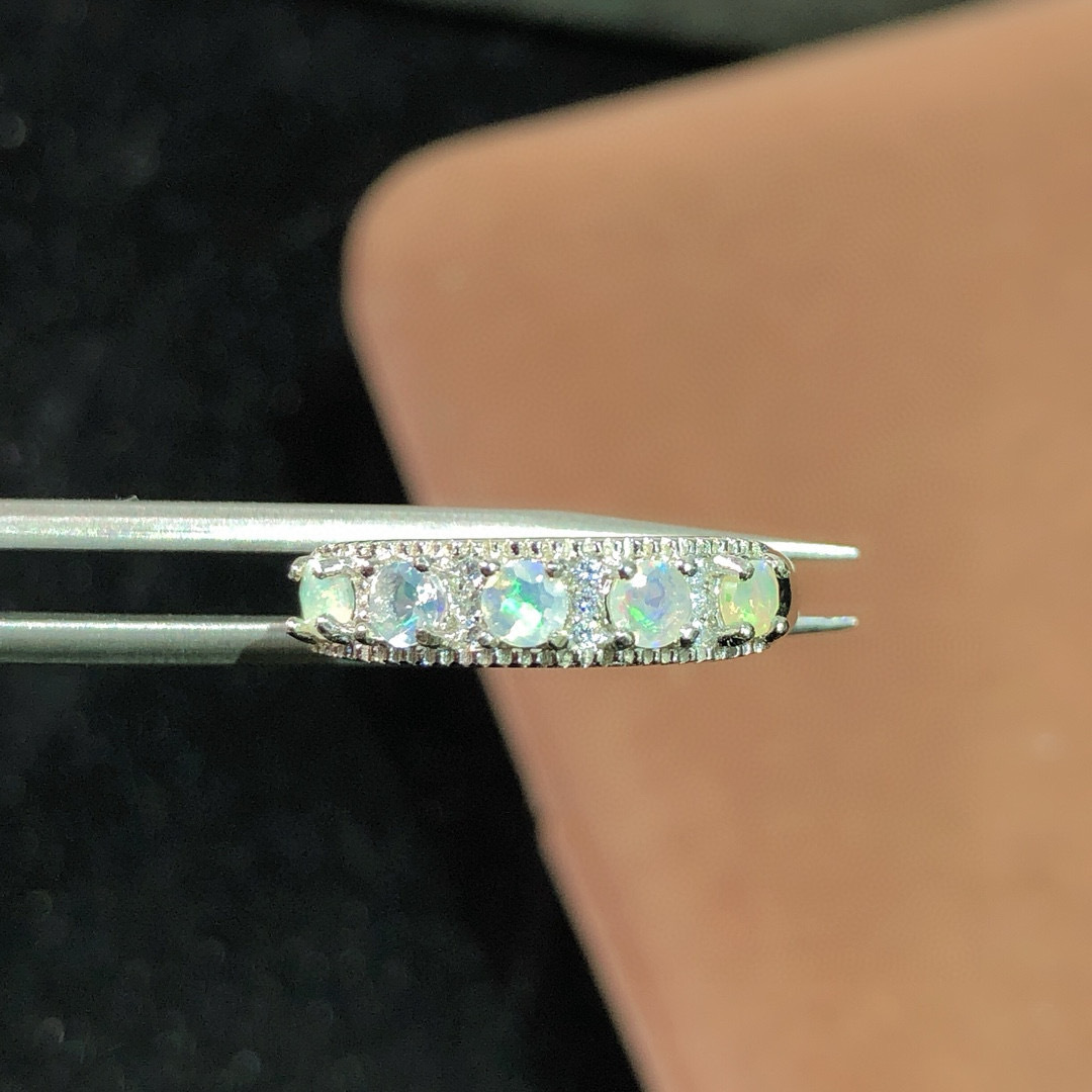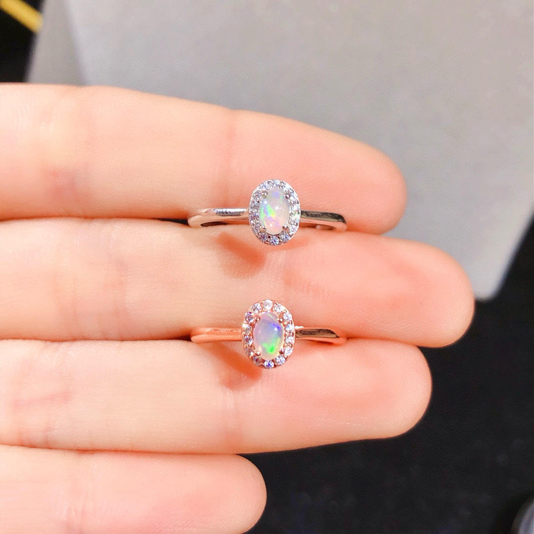 纯天然超美欧泊戒指 😝手工精心选料[色]颜色美,晶体好,火彩满满的!造型和工艺绝对惊艳~衬的皮肤格外白皙❤️实物美到没朋友!925银精工镶嵌,主石4*5天然欧泊支持检测!💰38/枚