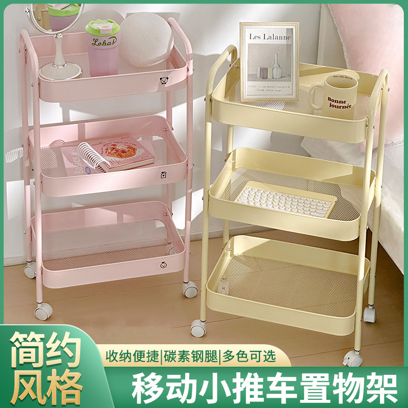 奶油风小推车置物架客厅多层零食卧室杂物收纳架厨房落地储物架