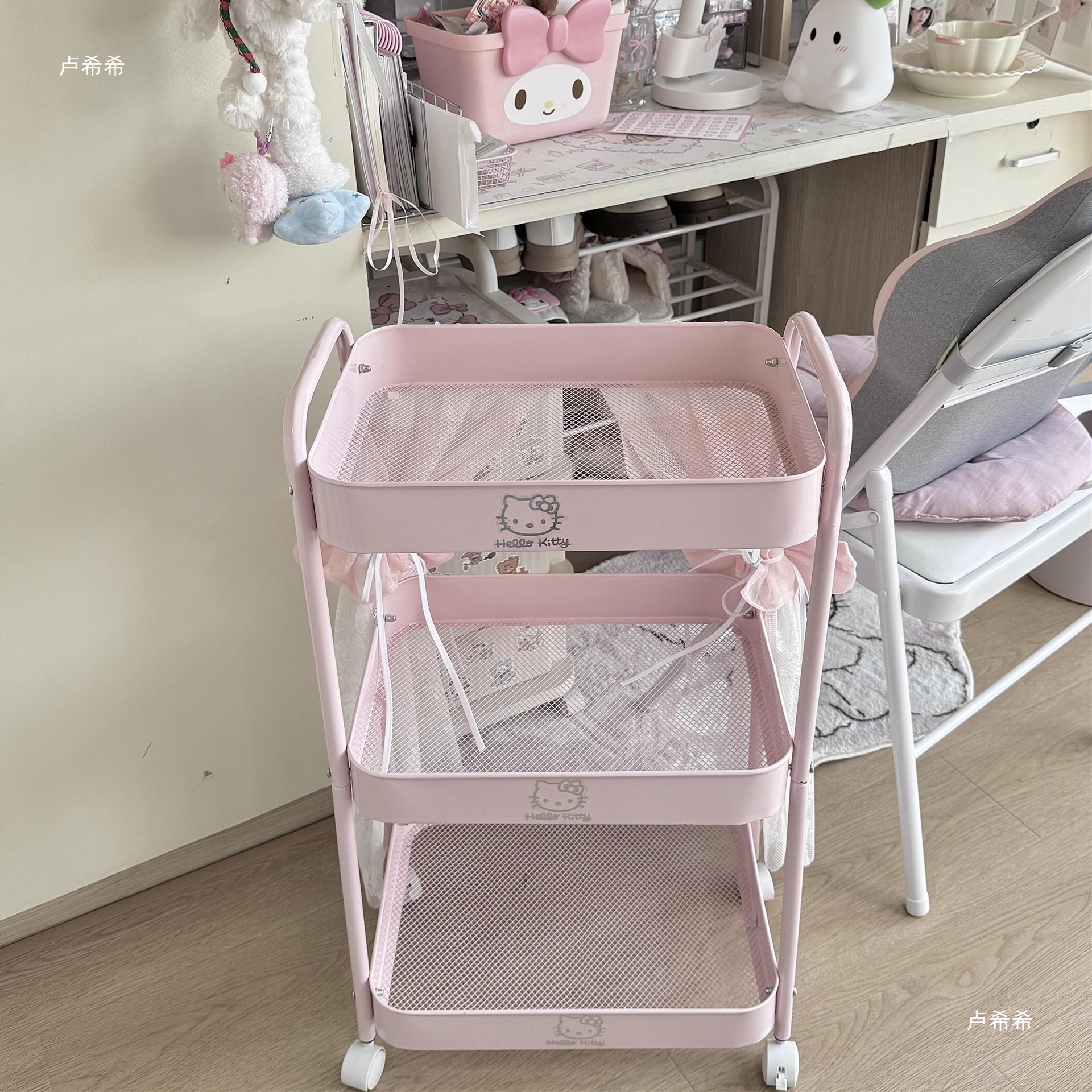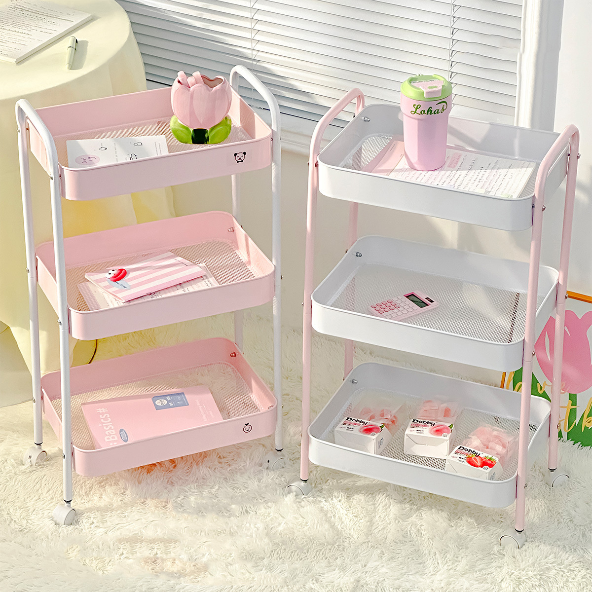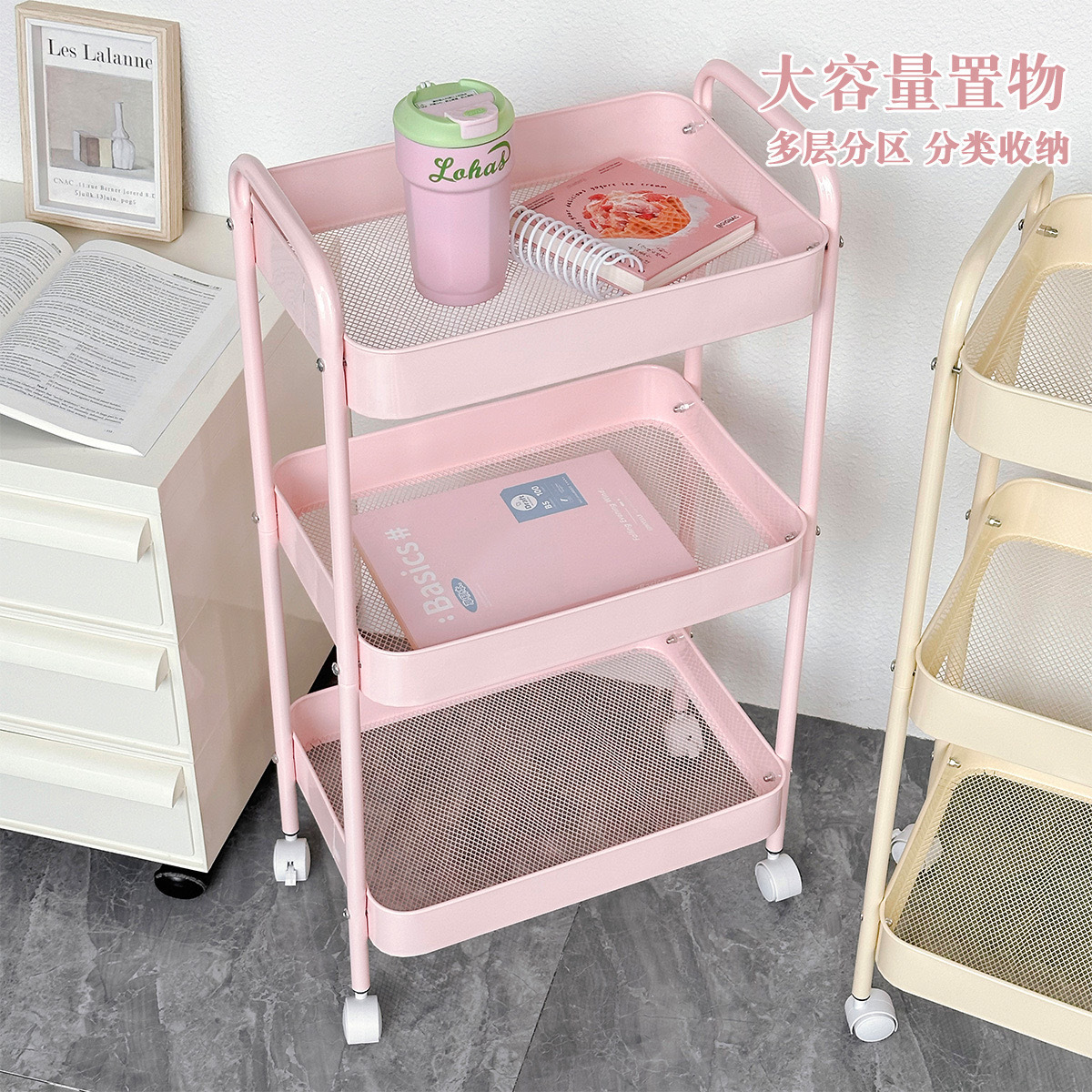 【宿舍好物】粉色小推车置物架零食架多层可移动篮子