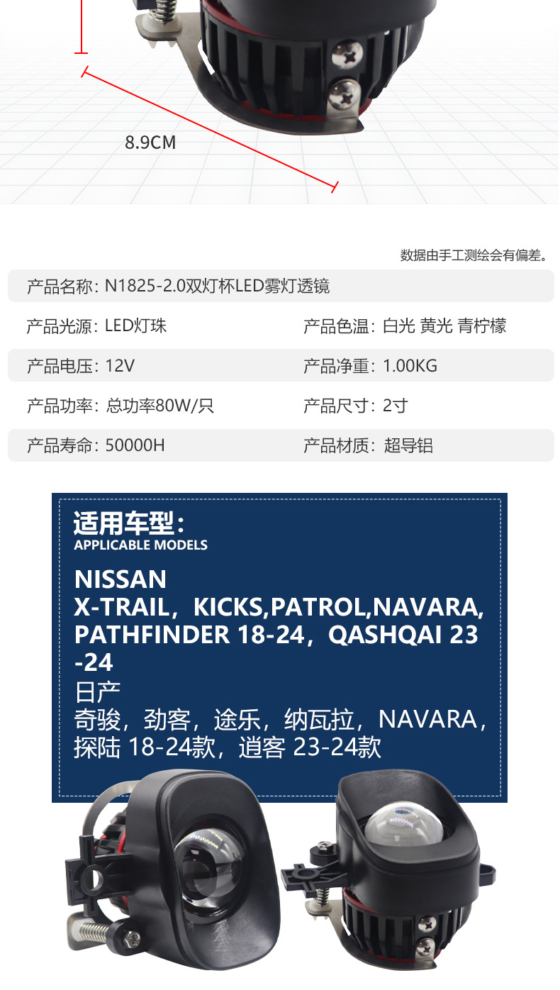 日産2.0インチダブルライトカップLEDレンズのフォグランプを適用します。