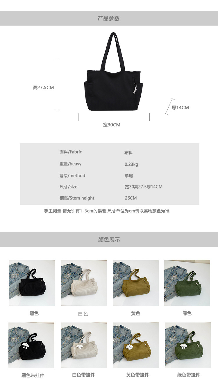 灯芯绒包包2026新款时尚大容量手提包森系百搭文艺复古学生上课包