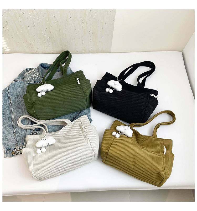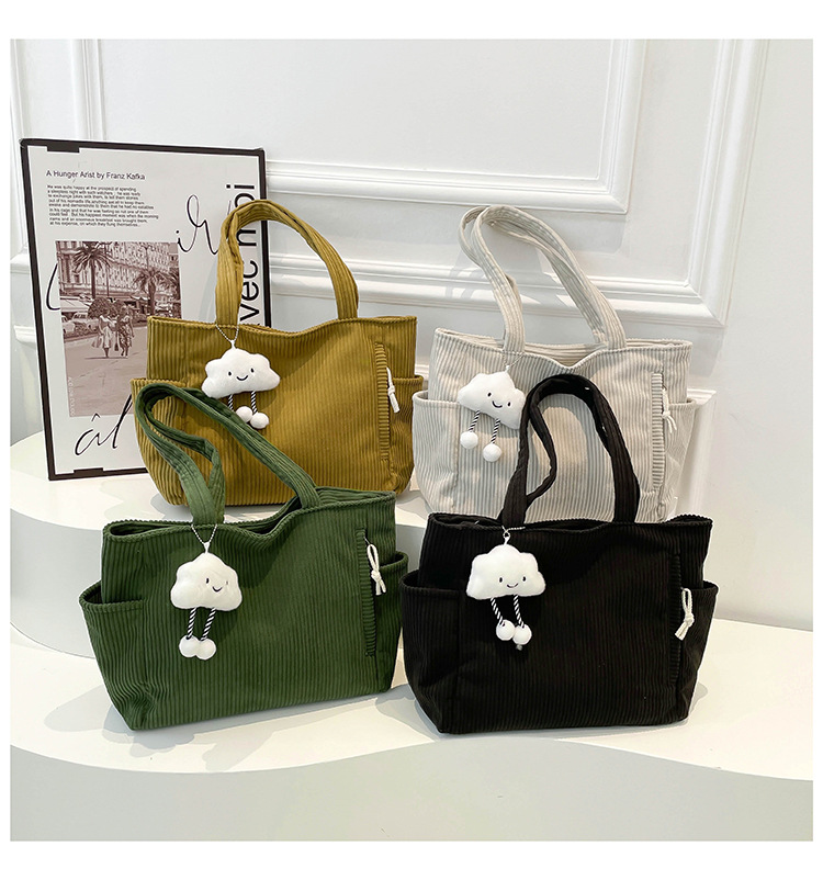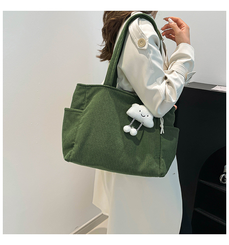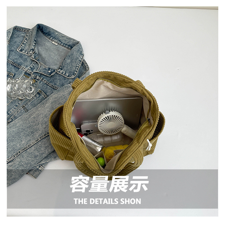 灯芯绒包包2025新款时尚大容量手提包森系百搭文艺复古学生上课包
