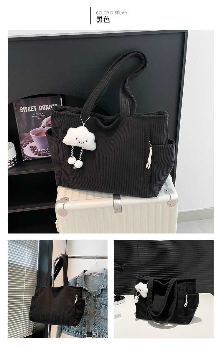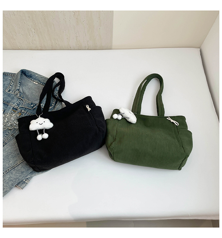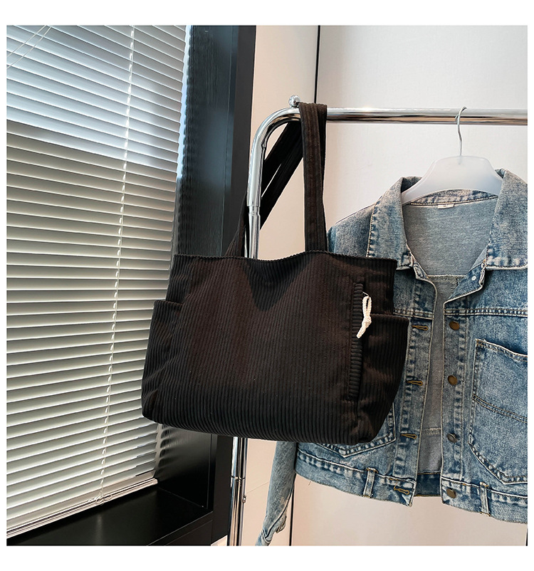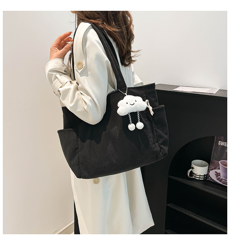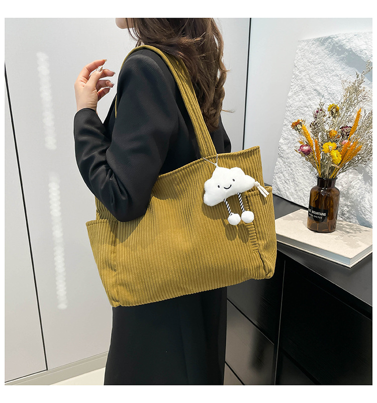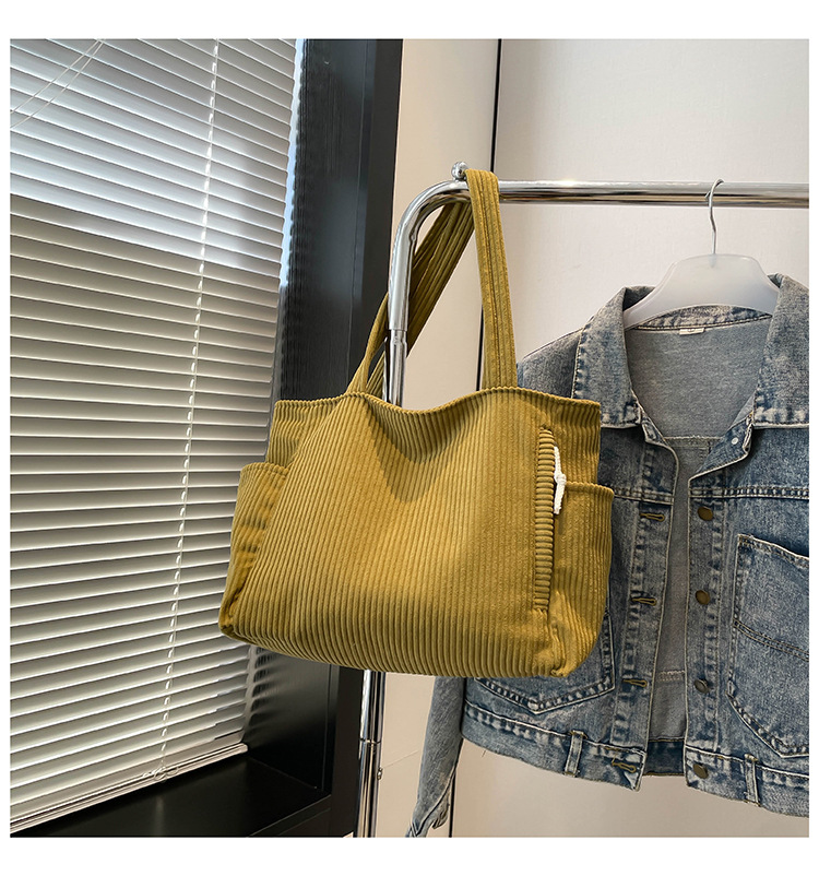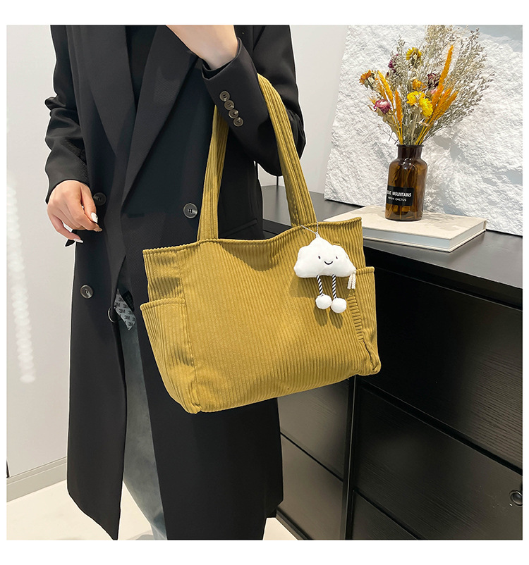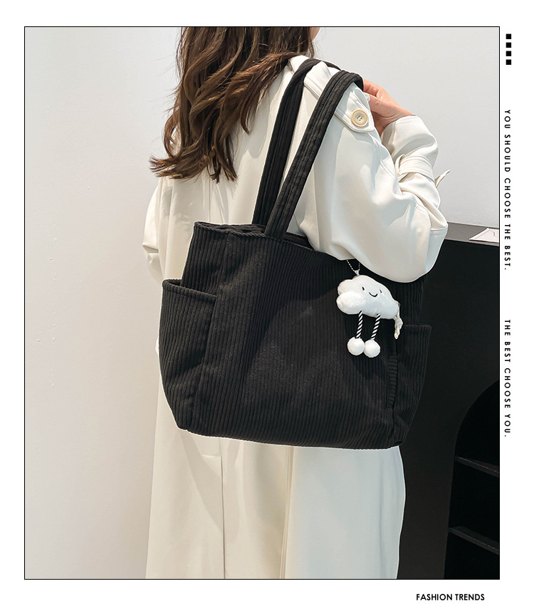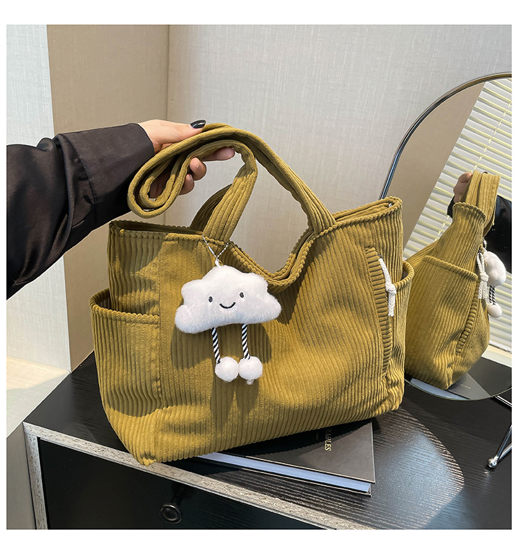大容量灯芯绒休闲手提包2025新款时尚百搭单肩包女学生上课托特包