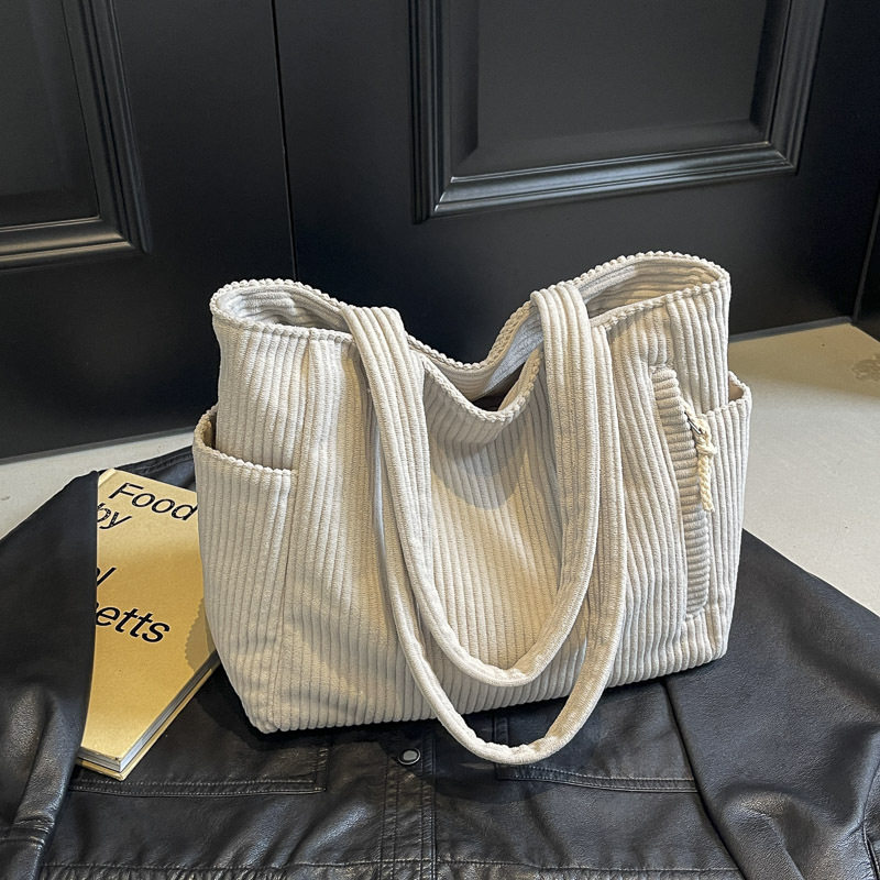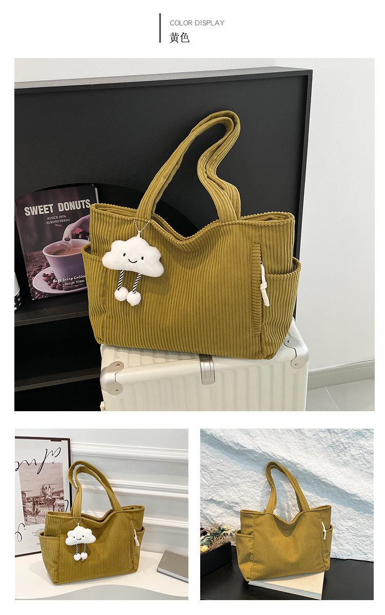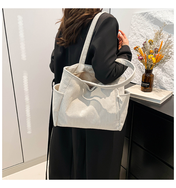 新しいコーデュロイトートバッグ女性の通勤大容量学生クラスショルダーハンドバッグシンプルな仕事メッセンジャーバッグ