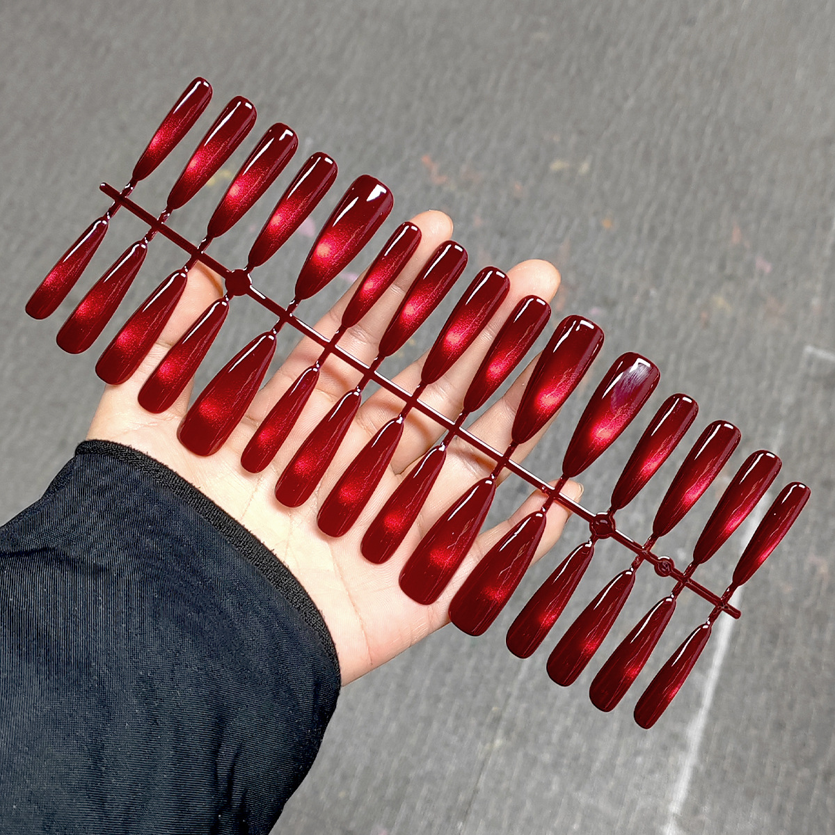宝石红猫眼美甲贴片分码甲片裸条追光猫眼成品穿戴甲手工甲预制甲