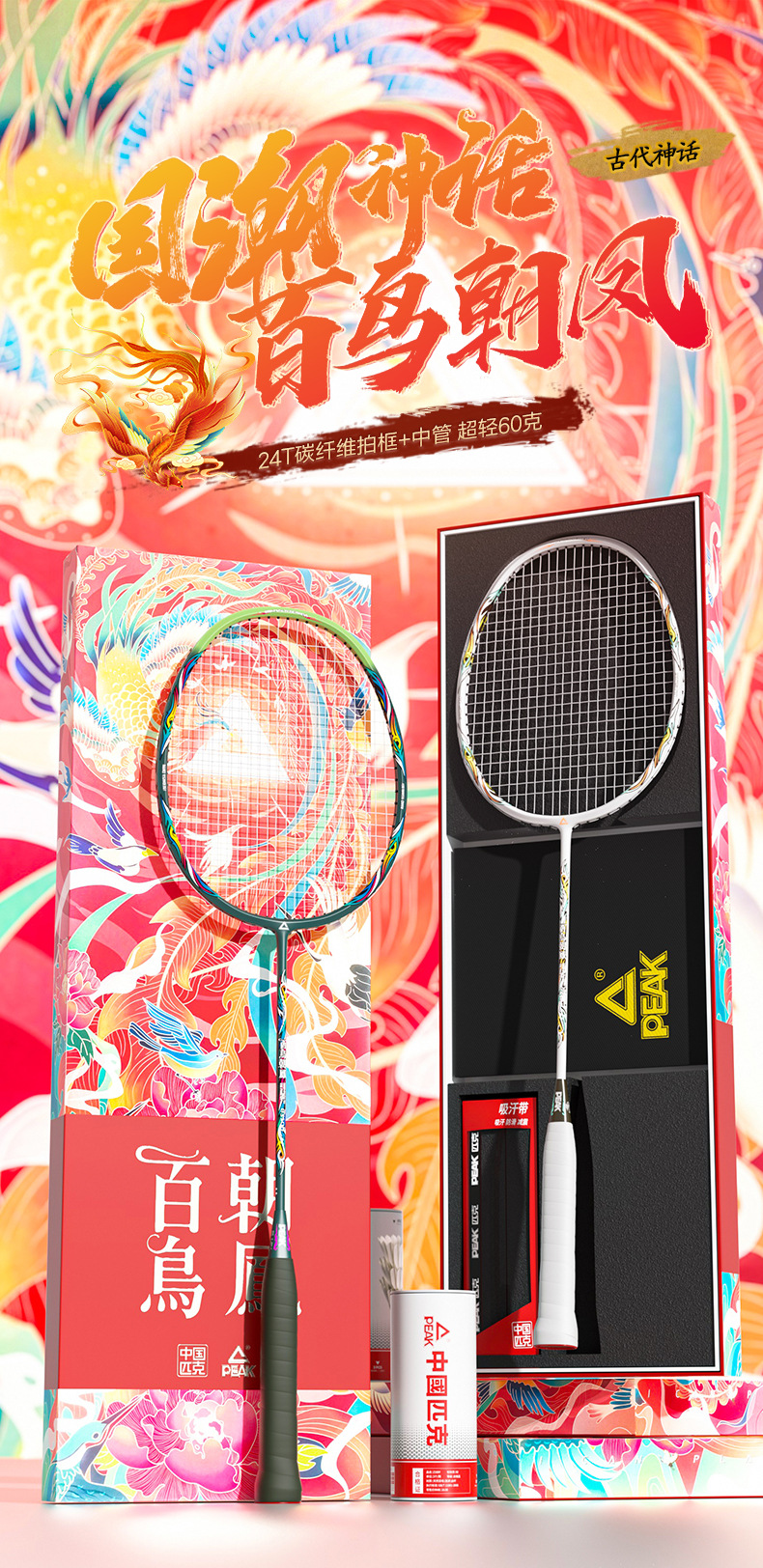 ピクピク百鳥朝鳳バドミントンラケット炭素繊維6u超軽量規格品2024年新型専門試合単拍