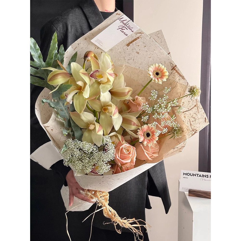 沉香木屑手工纸鲜花花束包装纸天然树皮包花纸花艺diy材料资材