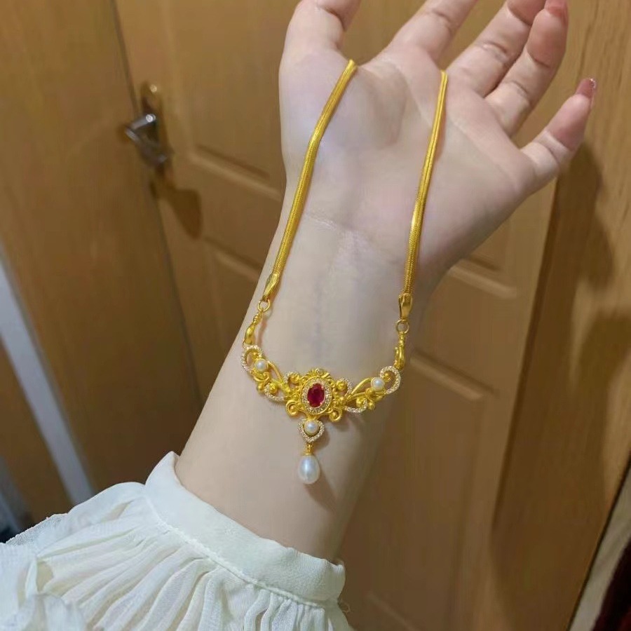 レトロ宮廷風は金色のペンダントネックレスをはめ込んでいます。