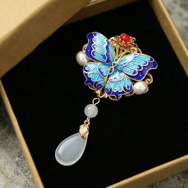 ティヴァン祺オリジナルデザイン景泰藍焼藍中国風レトロ蝶ブローチピンボタン