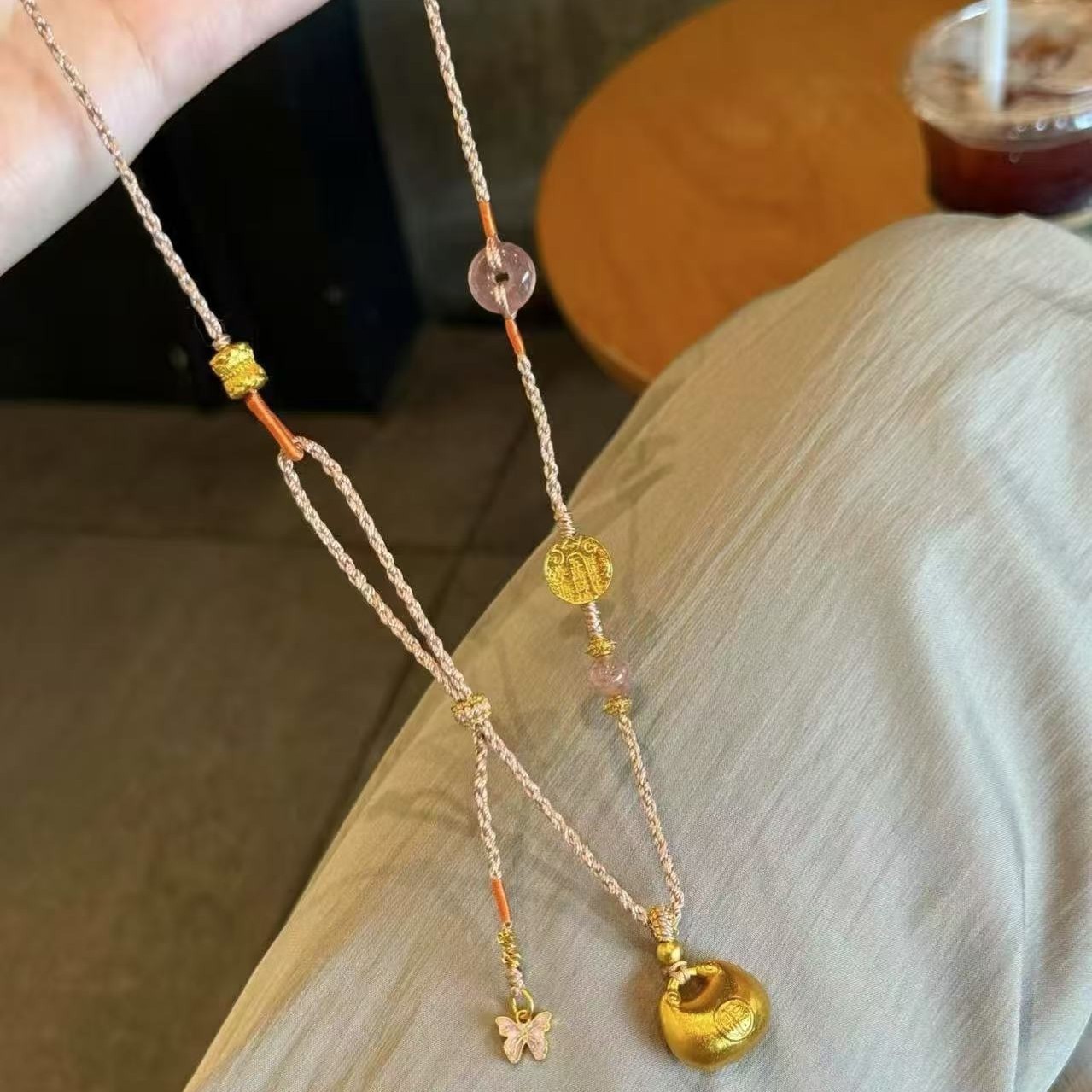 小胖福吊坠项链手工编绳项链绳金坨坨百搭毛衣链送女友
