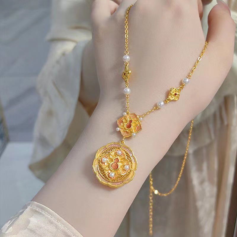 純銅の金メッキ宮廷風は金色のヒョウタンのネックレスを作ります。