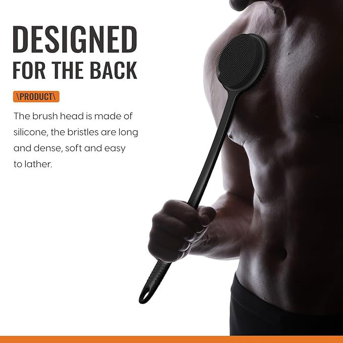 43cm硅胶洗澡刷清洁按摩神器家用浴室双面长柄刷懒人搓背沐浴刷