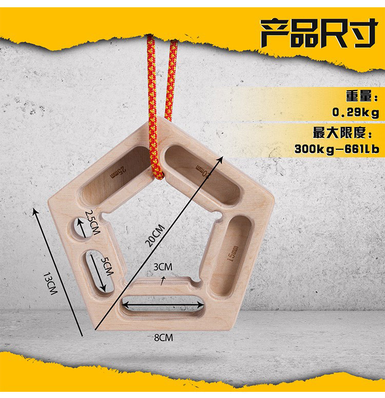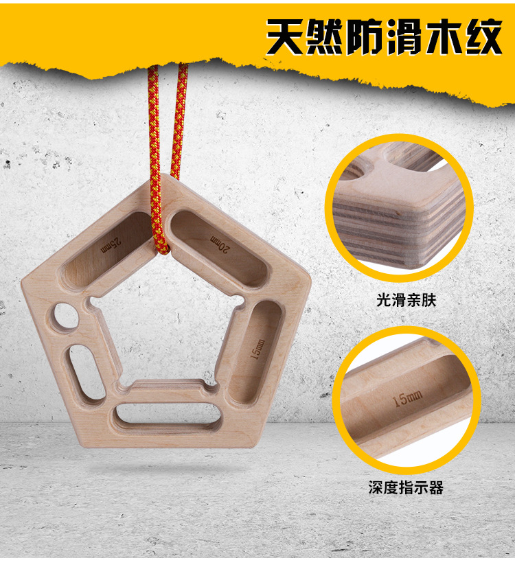 木质攀岩挂架室内外五边形指力板攀爬训练装备便携式吊板登山指板
