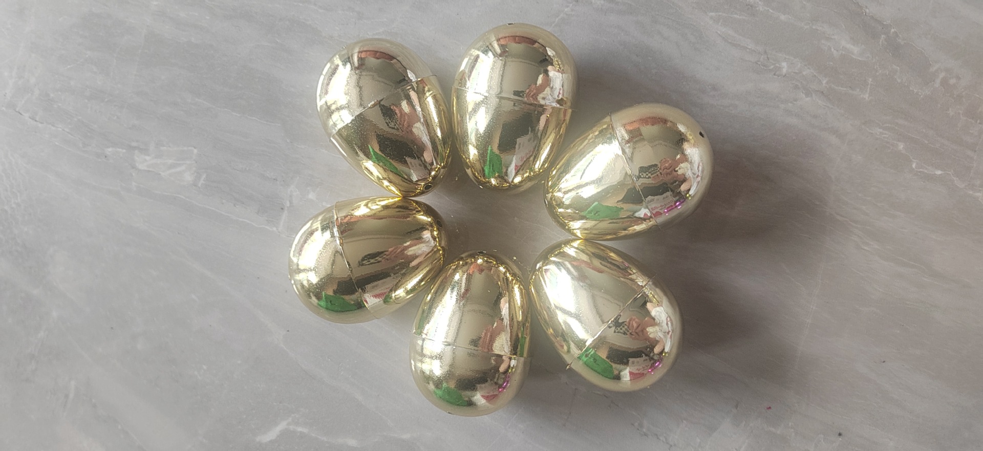 国境を越えて人気のある6x4.5cmイースターエッグプラスチック抽選卵殻開口メッキイースターエッグ卸売り