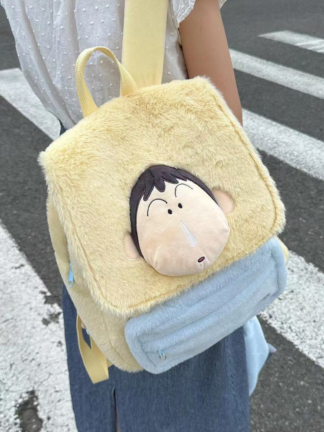 新款开学蜡笔小新外出毛绒斜挎包卡通包包送生日礼物大容量斜挎包