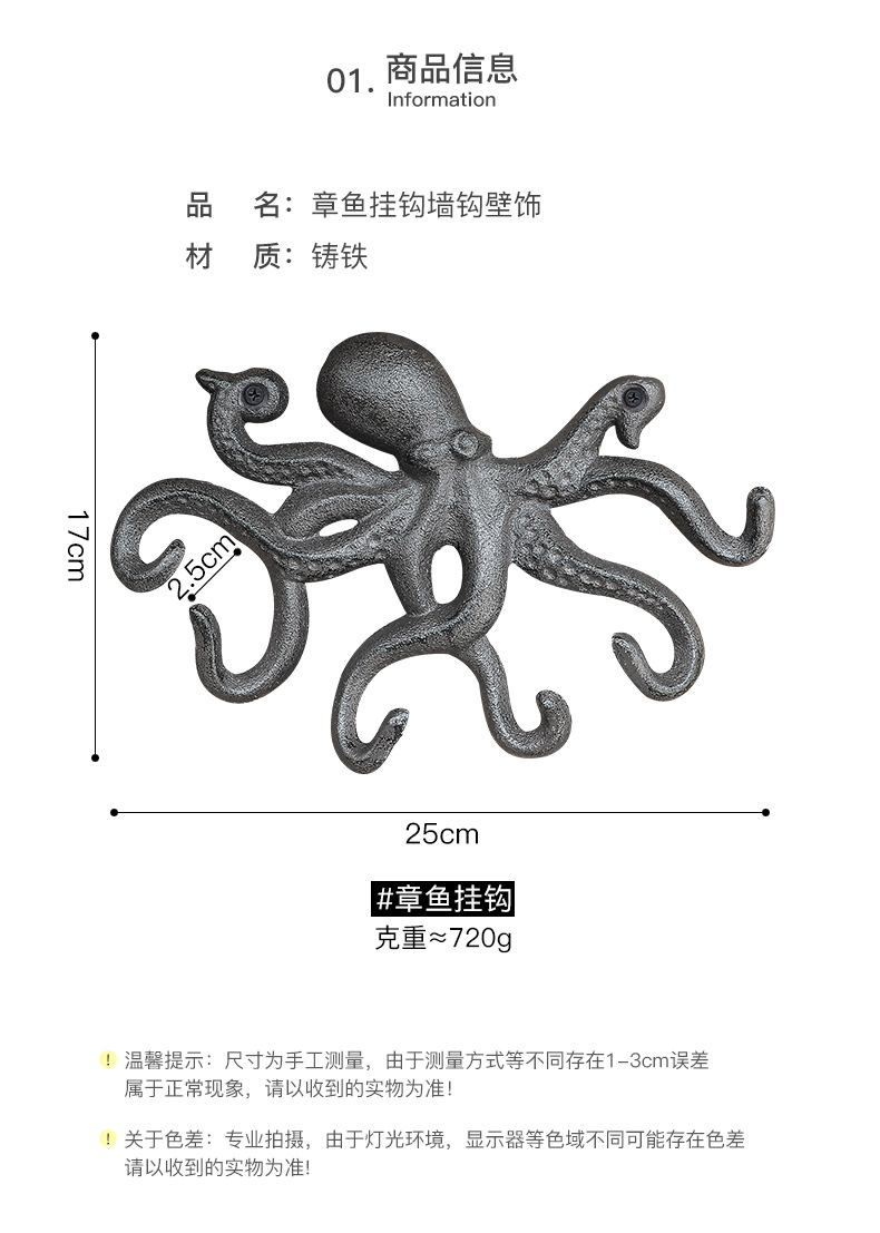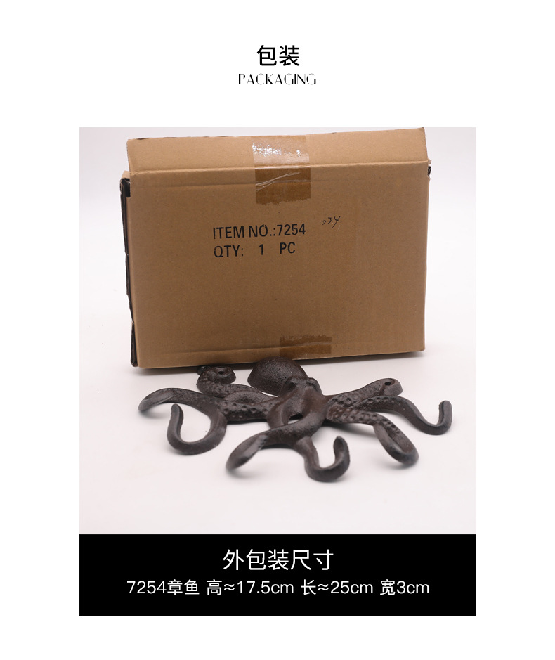 欧美复古铁艺章鱼雕像挂钩家居卫生间玄关酒吧咖啡厅壁饰装饰品