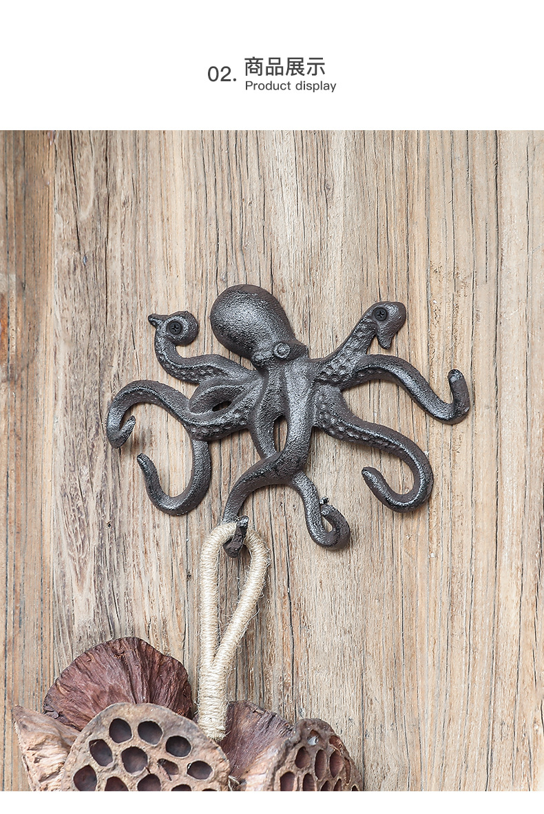 アメリカンレトロ鉄芸タコフック創意鋳鉄トイレ玄関フック壁掛けフックバー装飾品