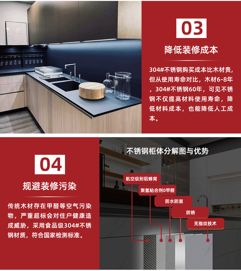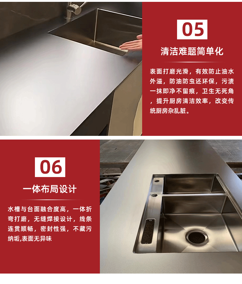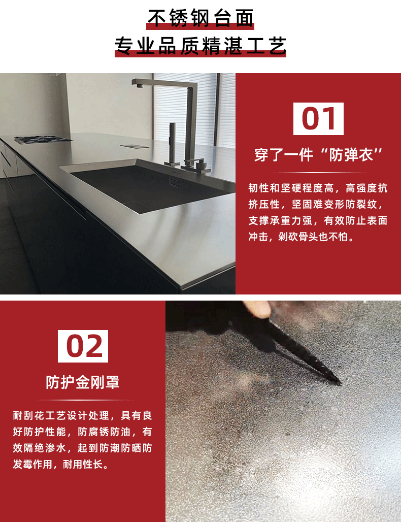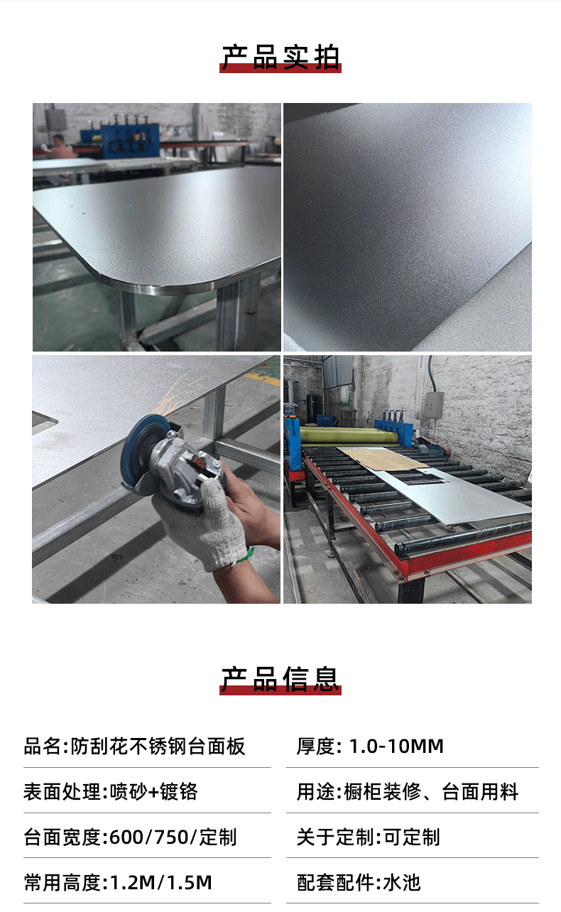 佛山304ステンレス鋼抗掻花台面全体の戸棚耐摩耗防かび防湿ステンレス鋼中実台面20