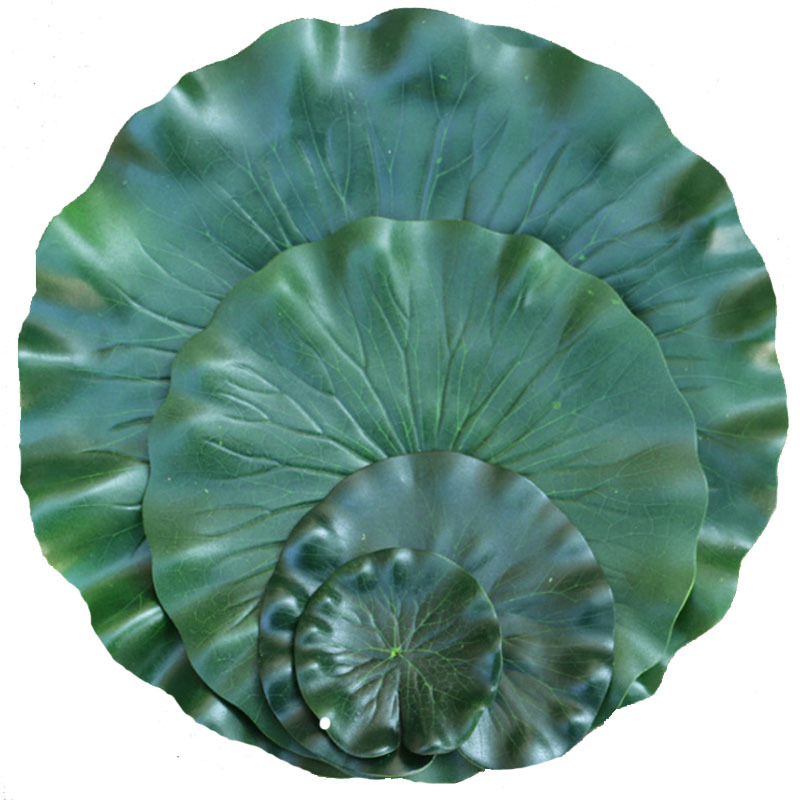 偽の蓮の葉の装飾のモノリシックな緑の葉のレストランの料理をシミュレーションします。