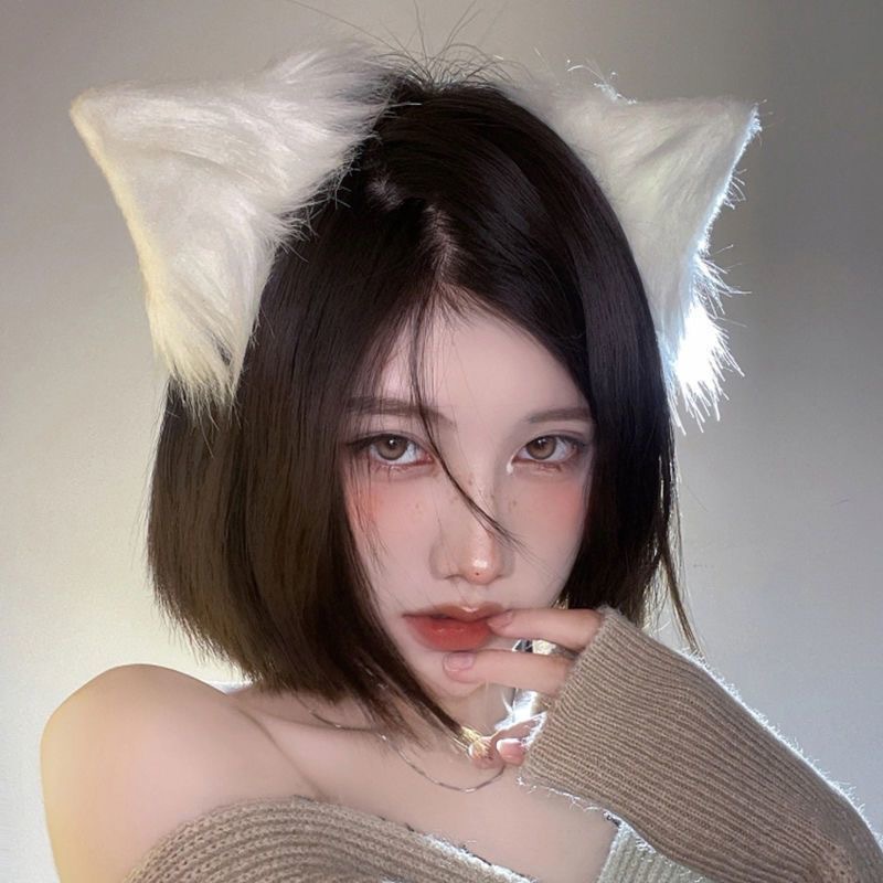かわいい猫の耳の頭飾り日系ネット赤白毛獣耳狐カードクリップ猫女ハロウィーン