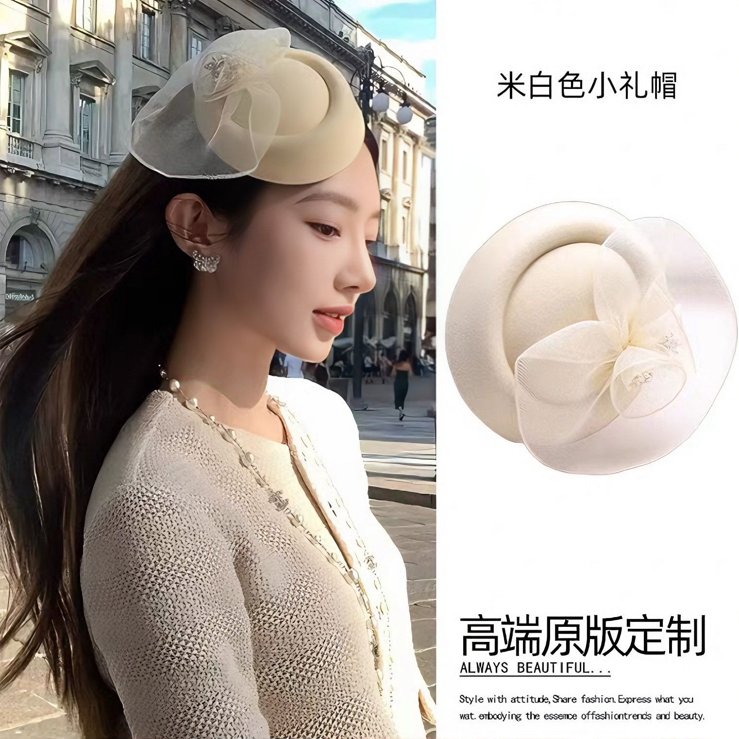 法式千金大小姐小礼帽头饰民国复古头纱发夹网纱花朵新娘帽子发饰