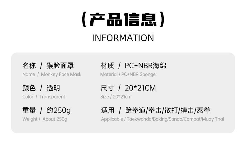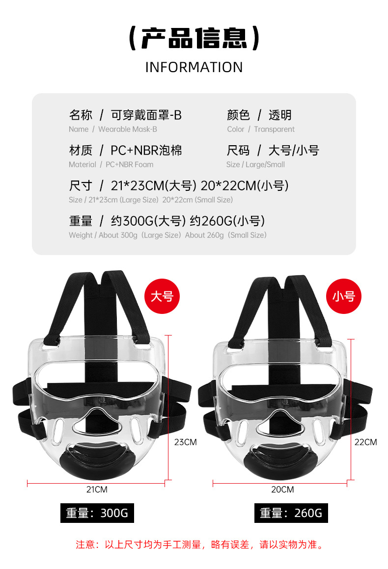 跆拳道猴脸面罩可搭配头盔成人散打格斗高防护透明可拆卸护具面罩
