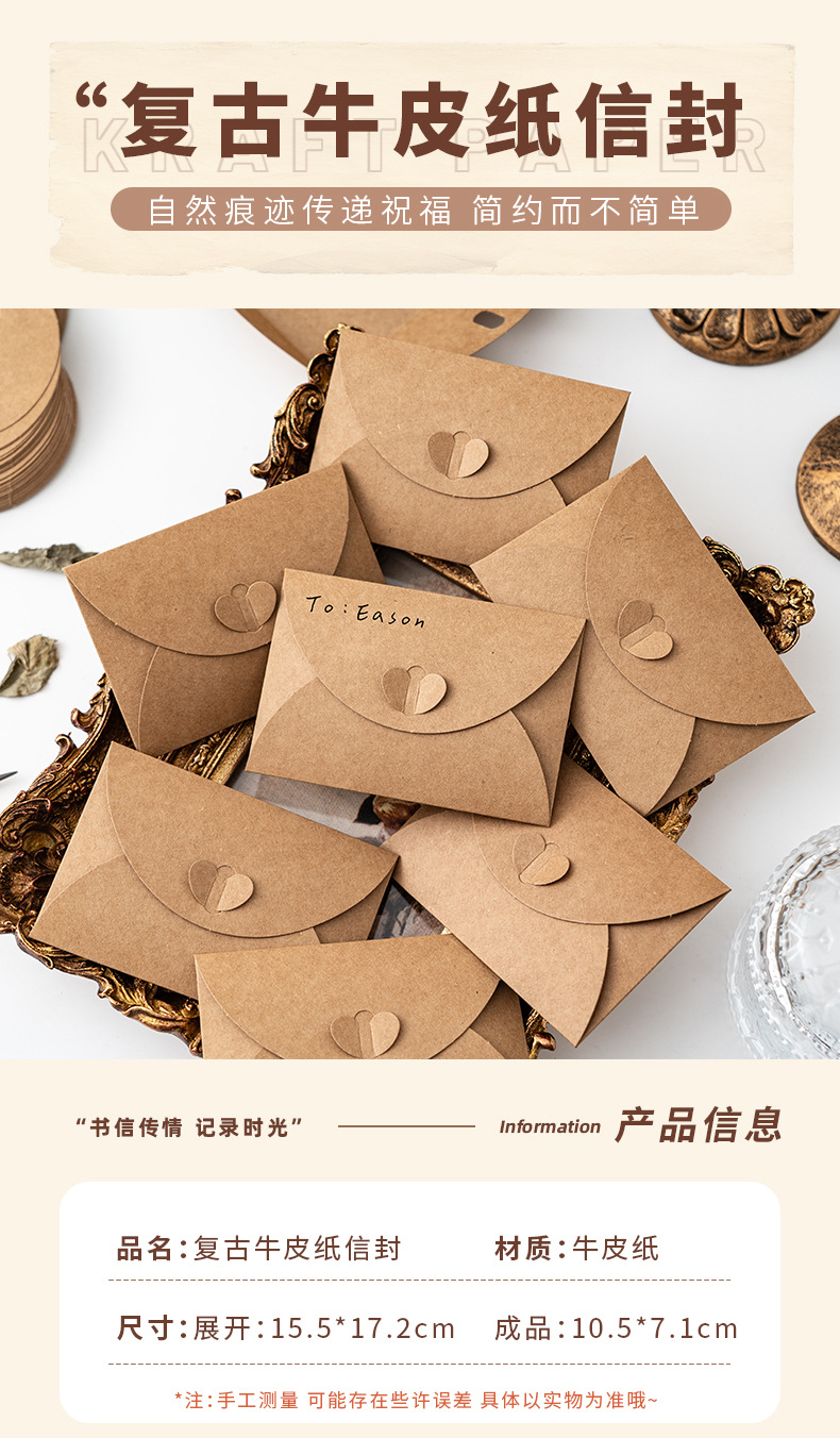 亚马逊爱心牛皮纸信封银行卡会员卡开窗贺卡明信片创意复古信封