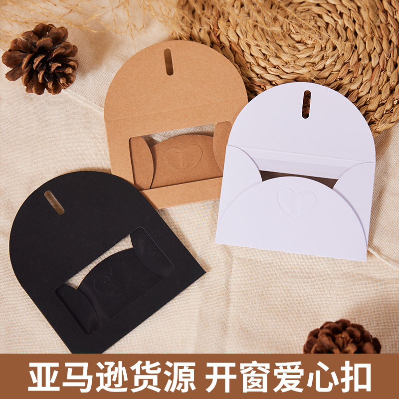 亚马逊厂家批发牛皮纸爱心扣开窗贴窗PET彩色彩卡信封会员卡信封