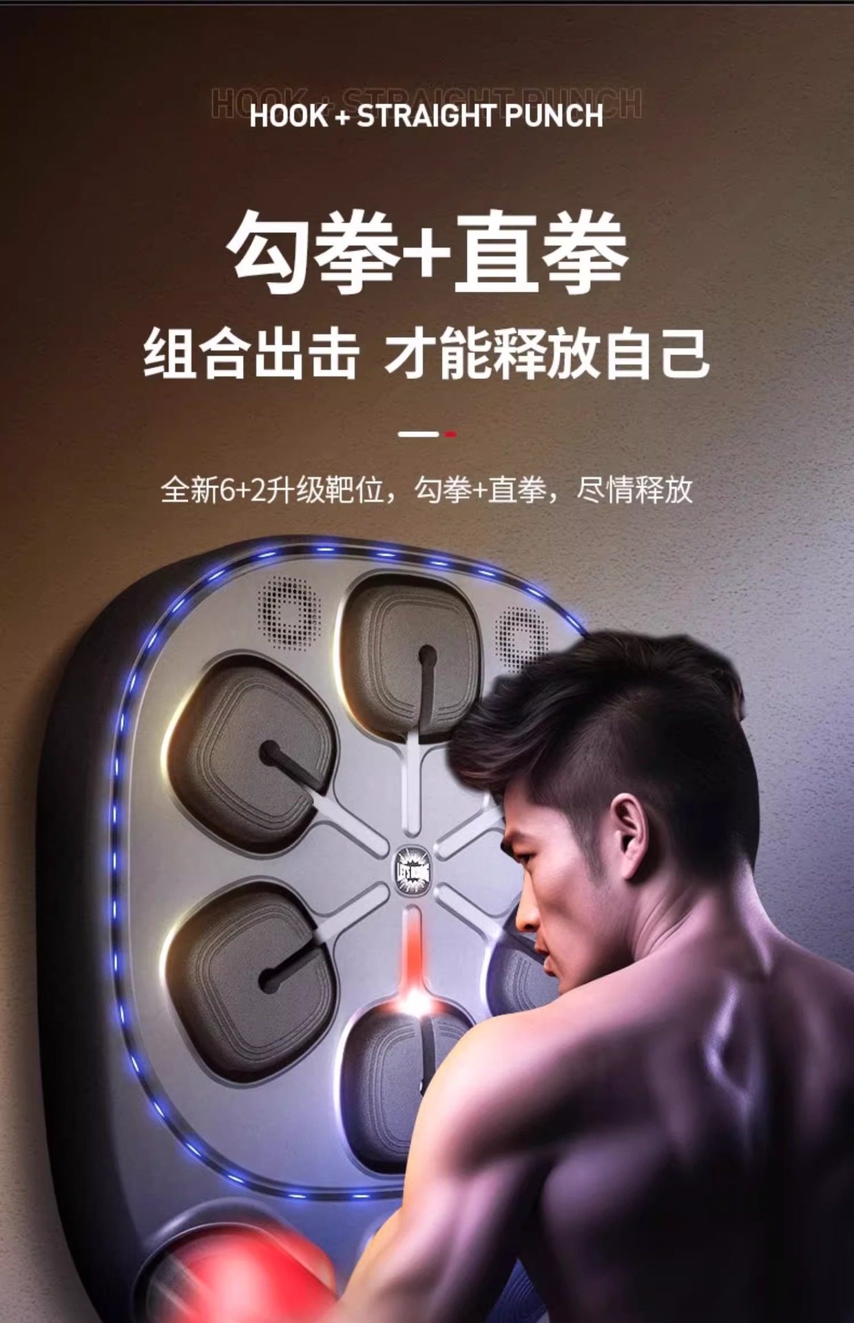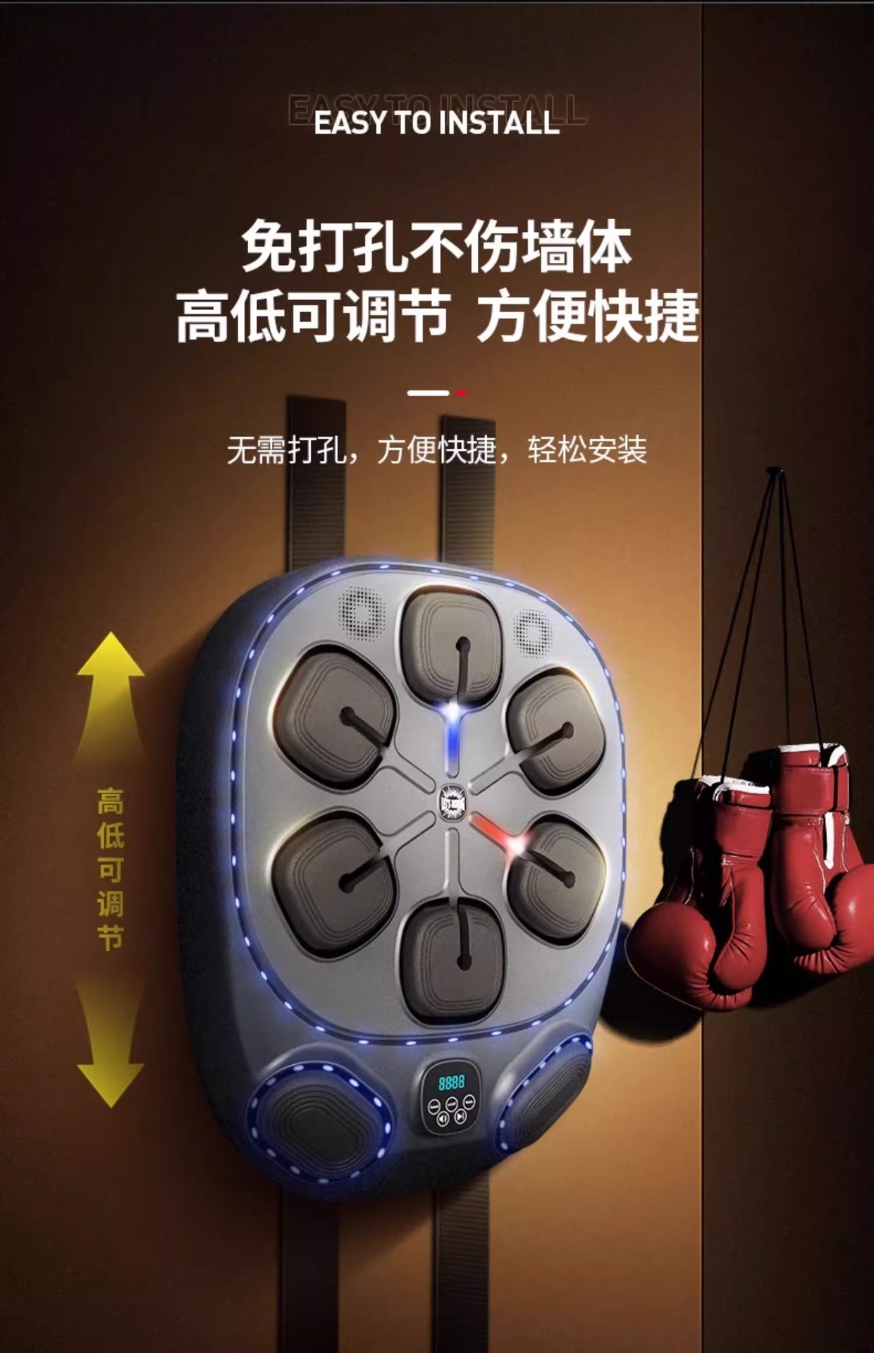 跨境蓝牙八靶音乐拳击靶家用拳击靶墙靶拳击训练器音乐拳击机
