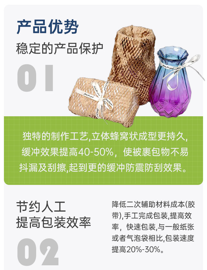 总之,包装蜂窝纸是一种环保、节能的包装材料,具有广泛的应用前景。随着人们环保意识的增强和可持续发展的要求,包装蜂窝纸的使用将会越来越普遍。