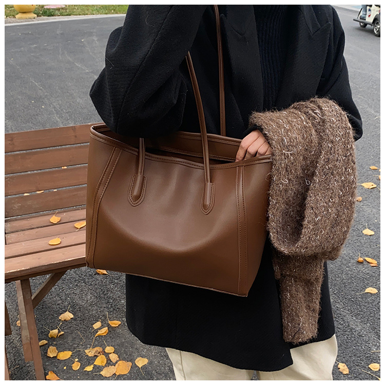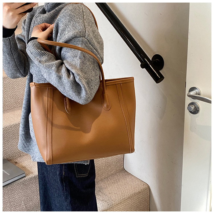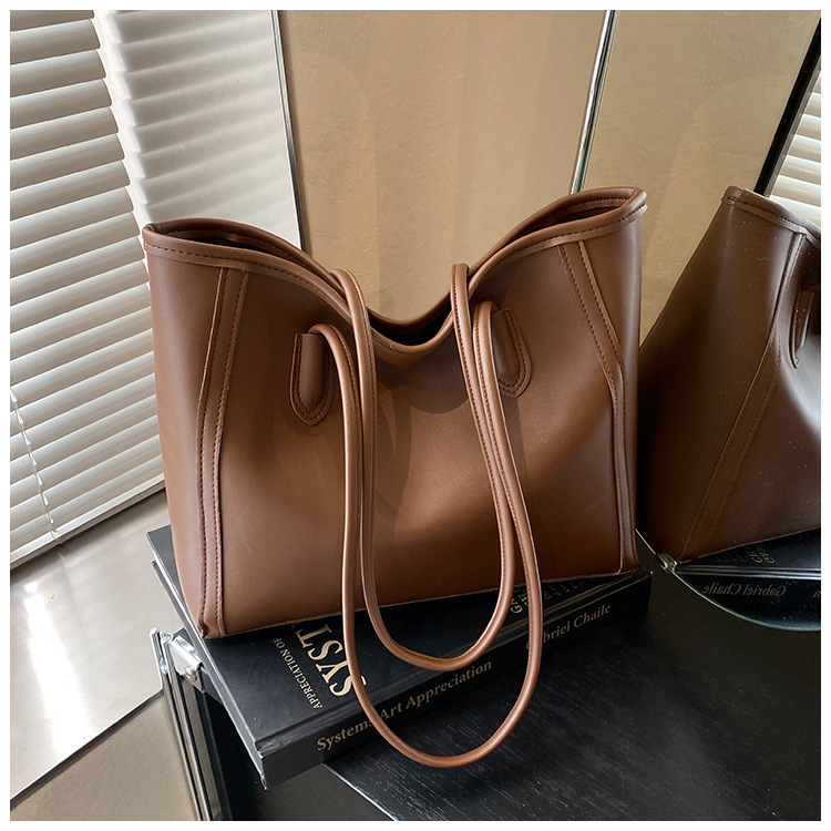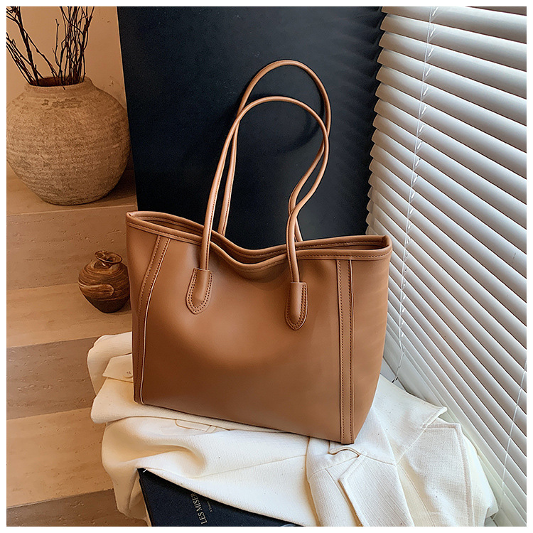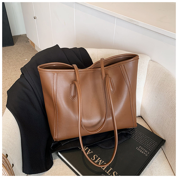 おしゃれなソフトレザーの質感のハンドバッグ、レディースシンプル通勤トートバッグ、大容量レトロカジュアル子母バッグ