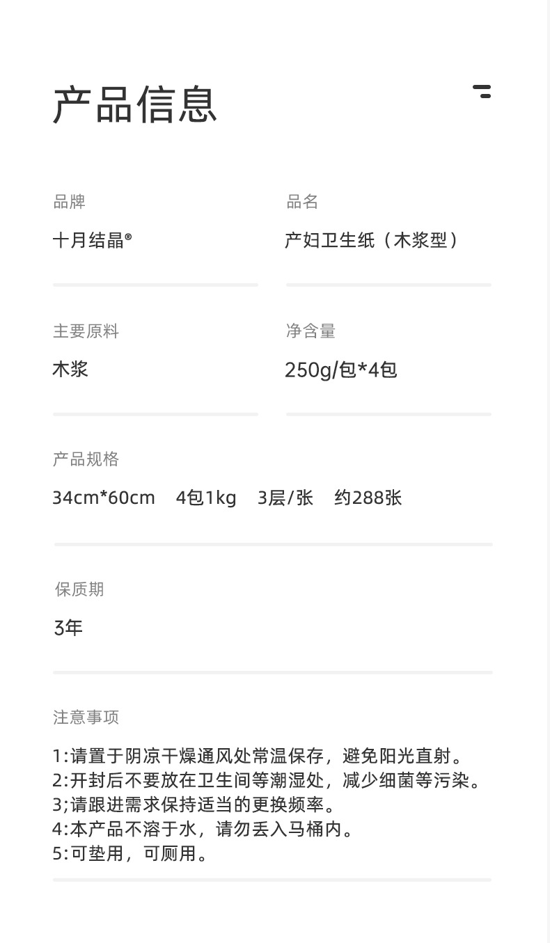 10月結晶月子紙産婦トイレットペーパー延長妊婦産室用産後産婦専用ナイフ紙1袋入り
