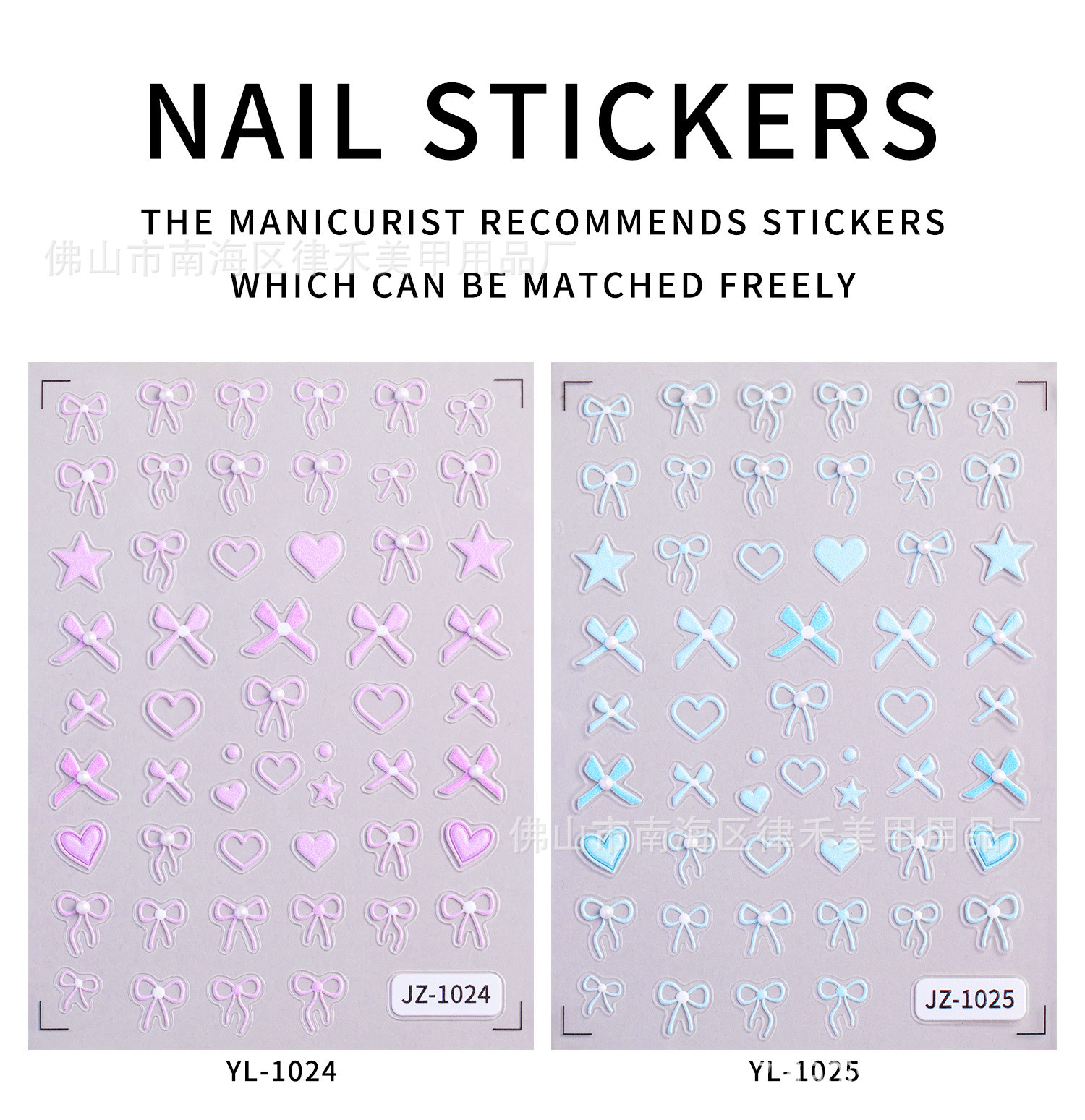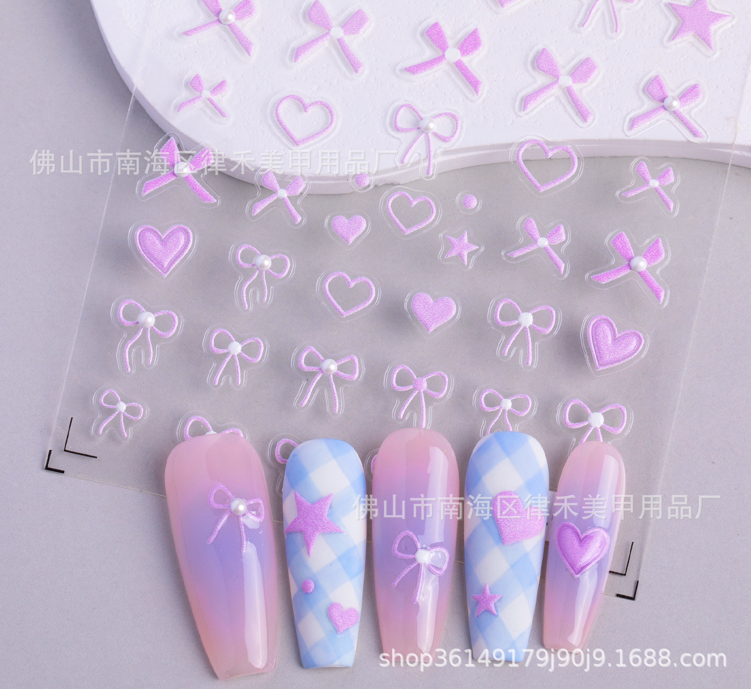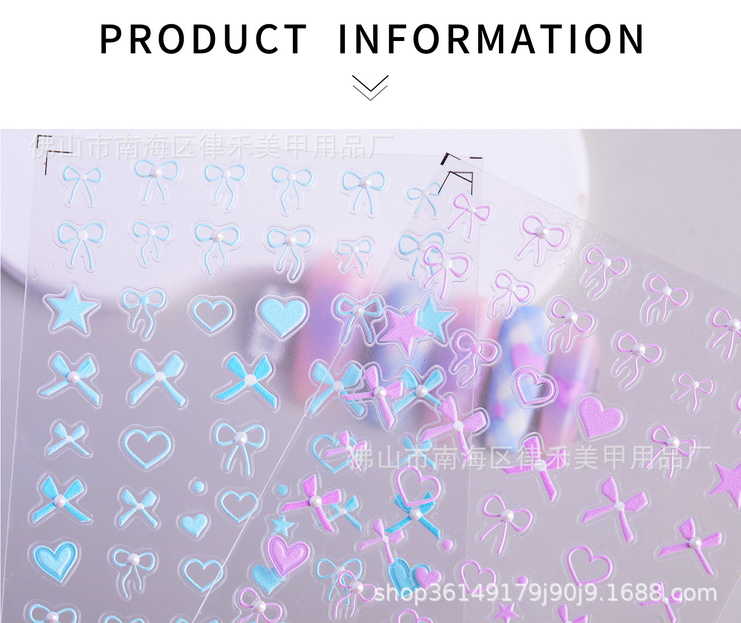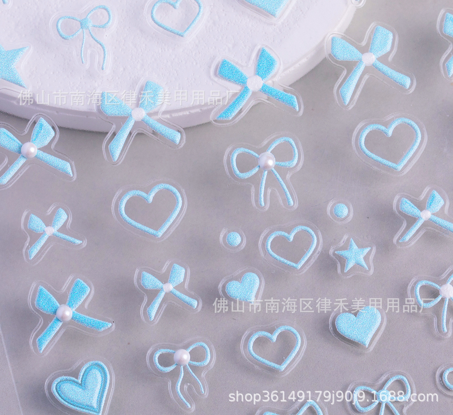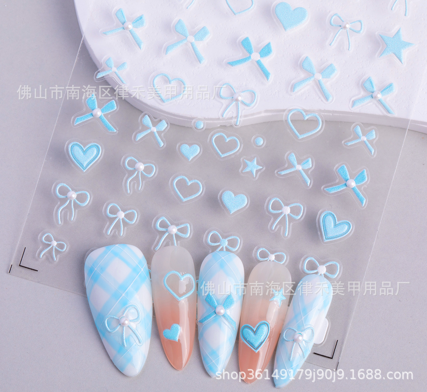 軽豪華高級真珠ネイルシール青ピンク愛リボン真珠立体浮き彫りネイルアクセサリー