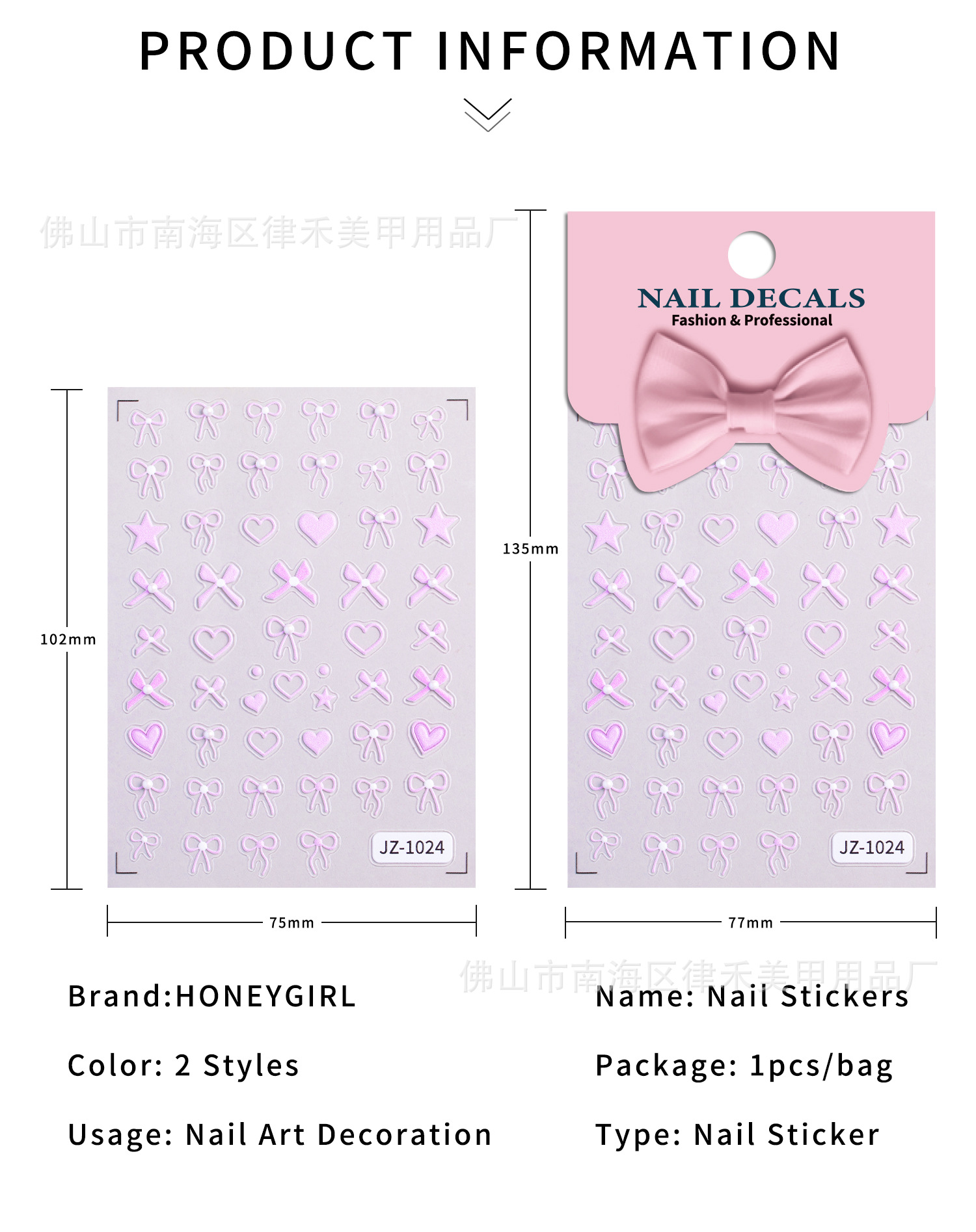 新品5Dカラー箔押し蝶結び立体ネイルステッカーネット赤流行金銀ネイルステッカー装飾