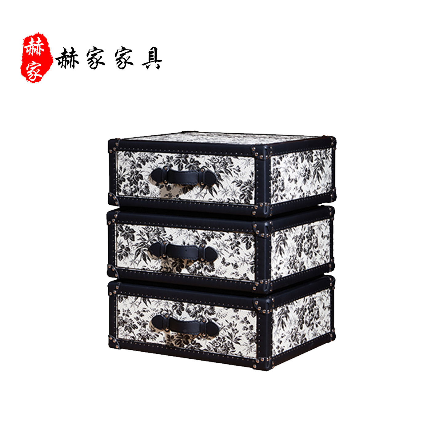 中世スタイルの寝室のチェストアメリカンレトロなレザーケース収納キャビネット引き出しキャビネット多層収納キャビネット収納キャビネット
