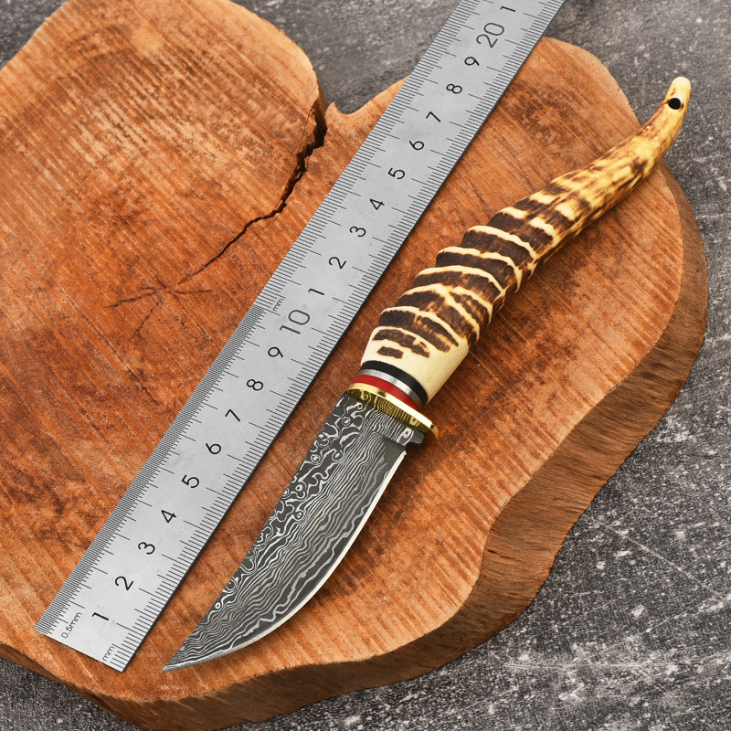 メーカー卸売り直刀小刀屋外ダマスカス紋擬骨ハンドル小刀多機能刀高硬度直刀