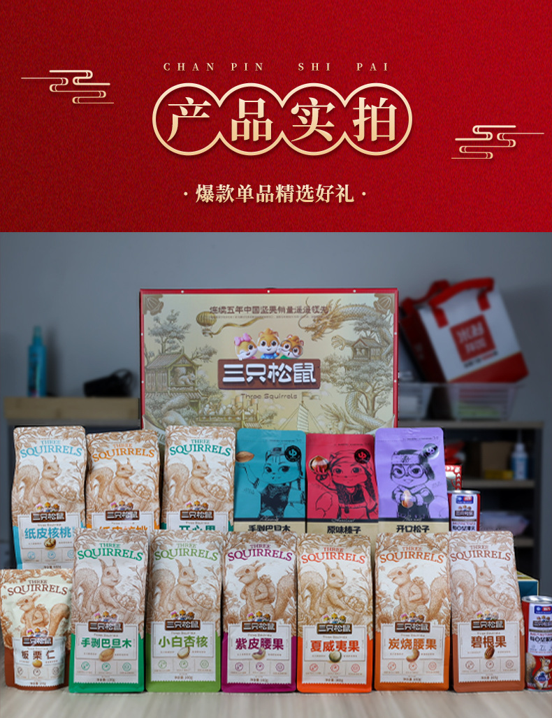 リスの純粋なナッツのギフトボックスg/10袋の混合スナックのギフトバッグナッツの炒め物の組み合わせ