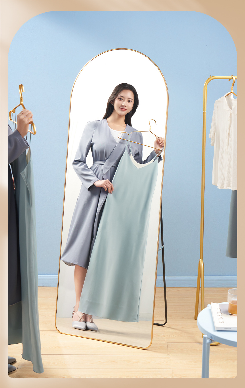 衣料品店の鏡 ステンレス全身鏡 フロアミラー 家庭用 リビングルーム 試着鏡 移動式 着痩せ効果のあるデザイン