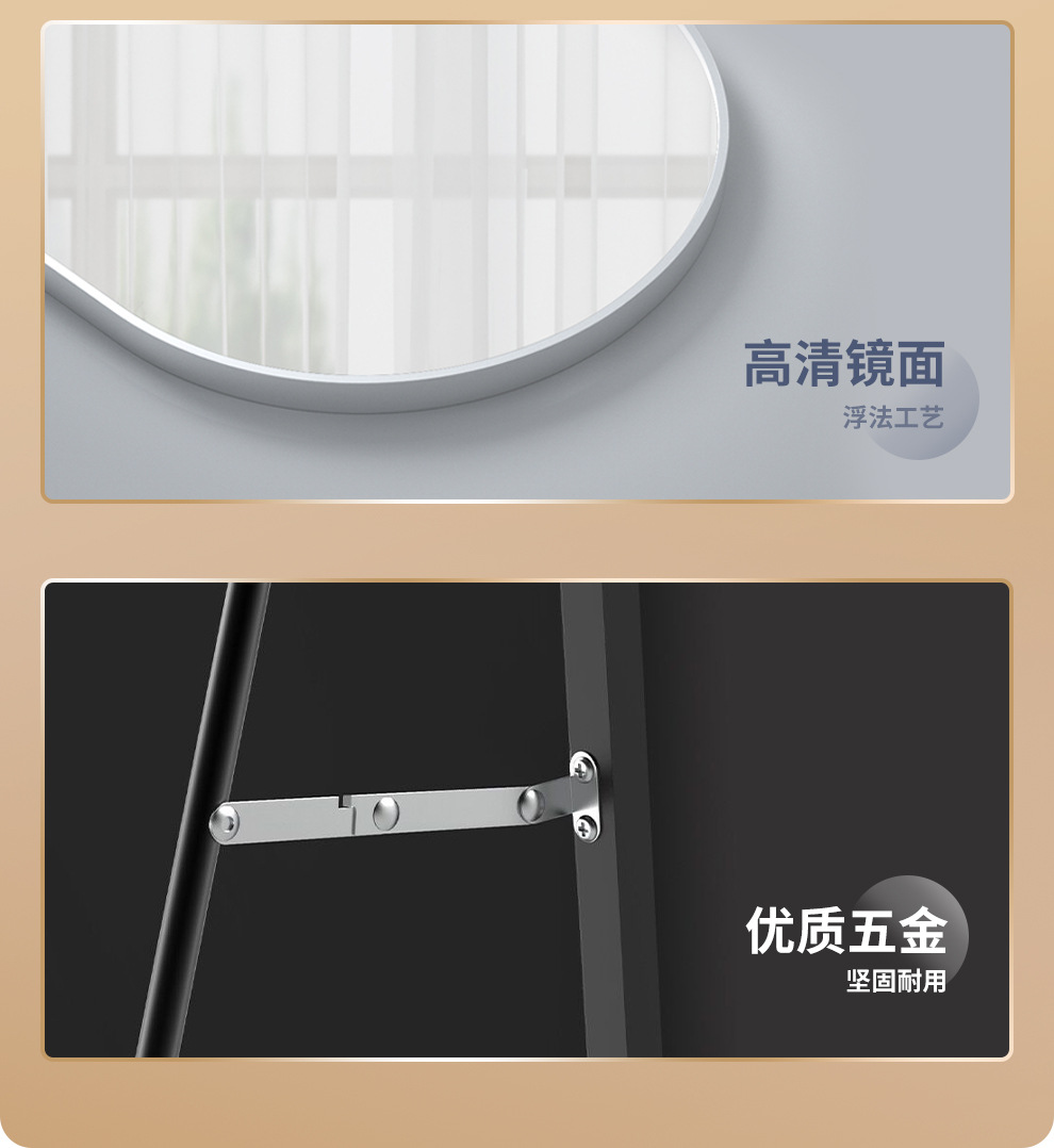 シンプルなフロアミラー、家庭用全身鏡、リビングルームのフロアミラー、アルミニウム合金の試着鏡、軽くて豪華な寝室の壁掛け姿見
