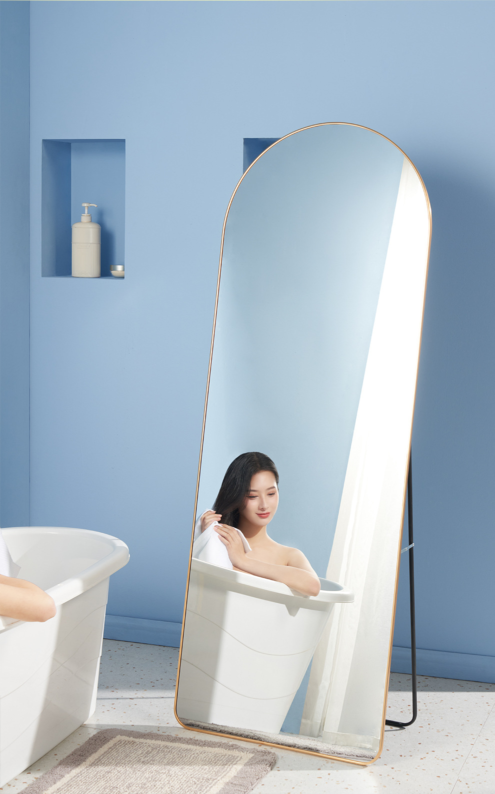 全身鏡 アーチ型姿見鏡 インターネットで話題の服飾店試着鏡 モダンでシンプルな写真撮影・ライブ配信用大型鏡