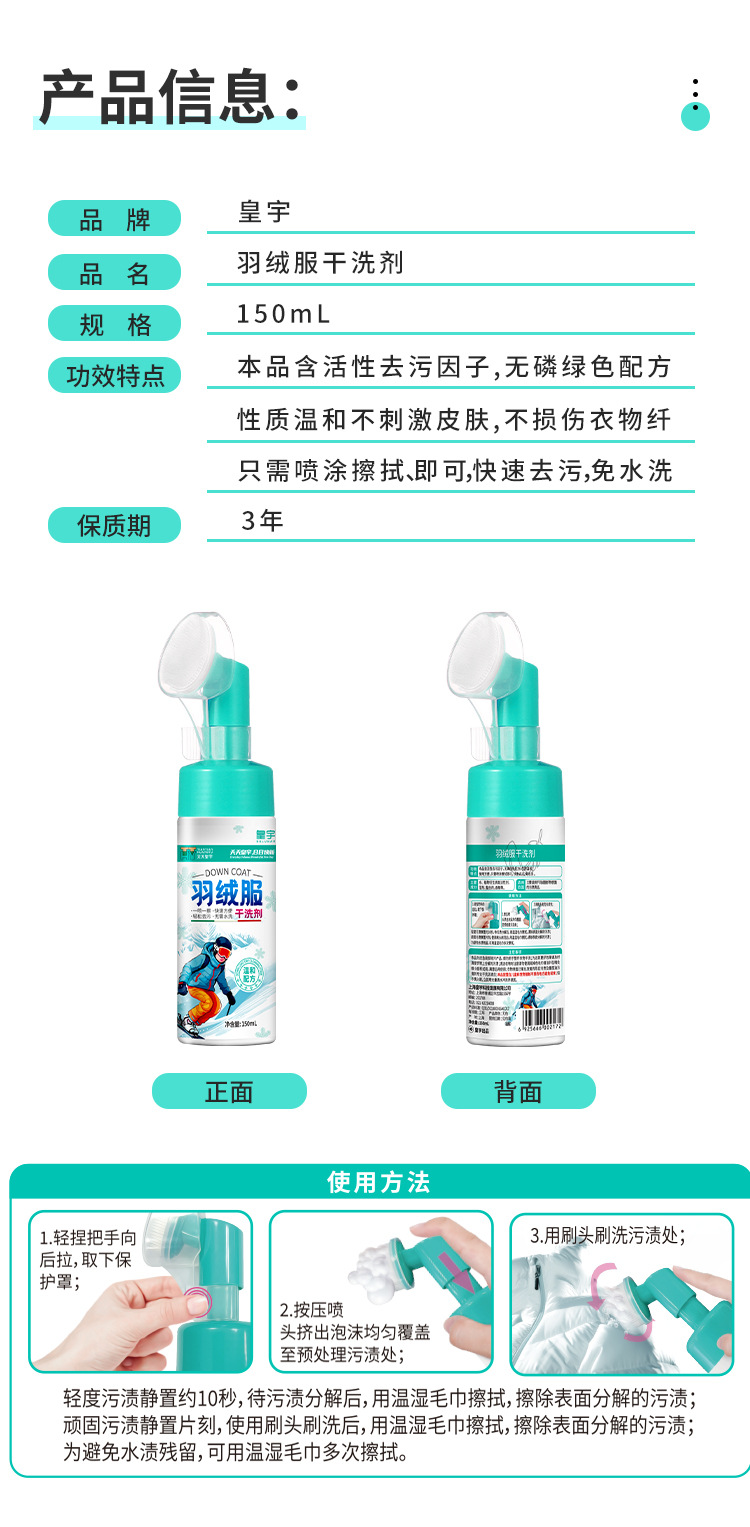 皇宇ダウンジャケット乾燥剤ダウンジャケット家庭用無水洗い洗浄洗剤泡型スプレー汚れ神器