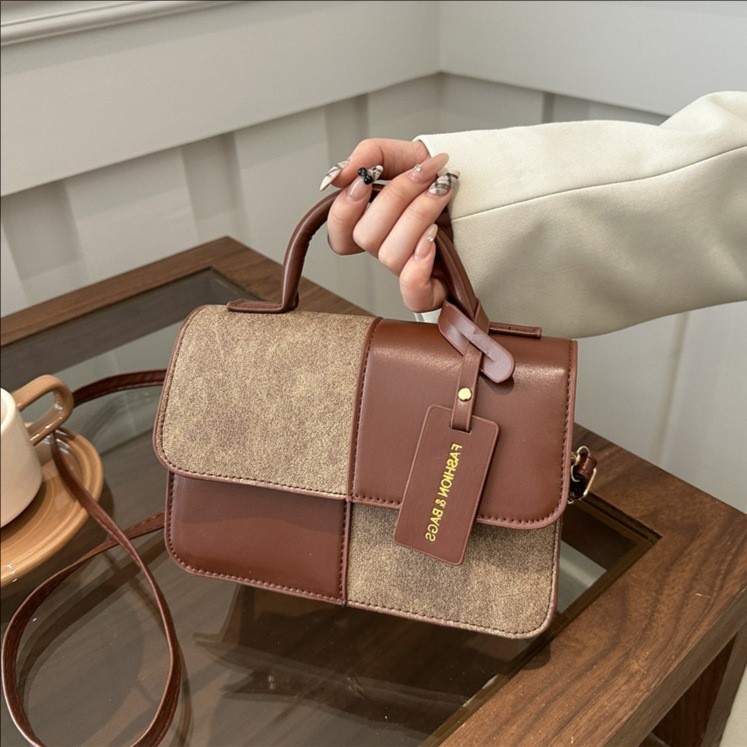 2026年新作 流行のクロスボーダーファッション スプライス素材 ハンドバッグ 通勤にも使えるおしゃれなショルダーバッグ/斜めがけバッグ 小さめスクエアバッグ トレンド
