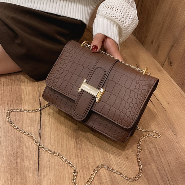 2026年新作のクロスボーダーバッグ、女性向け、個性的な石目模様のチェーンショルダーバッグ、高級感のあるシングルショルダー、脇に挟む小さめスクエアバッグ