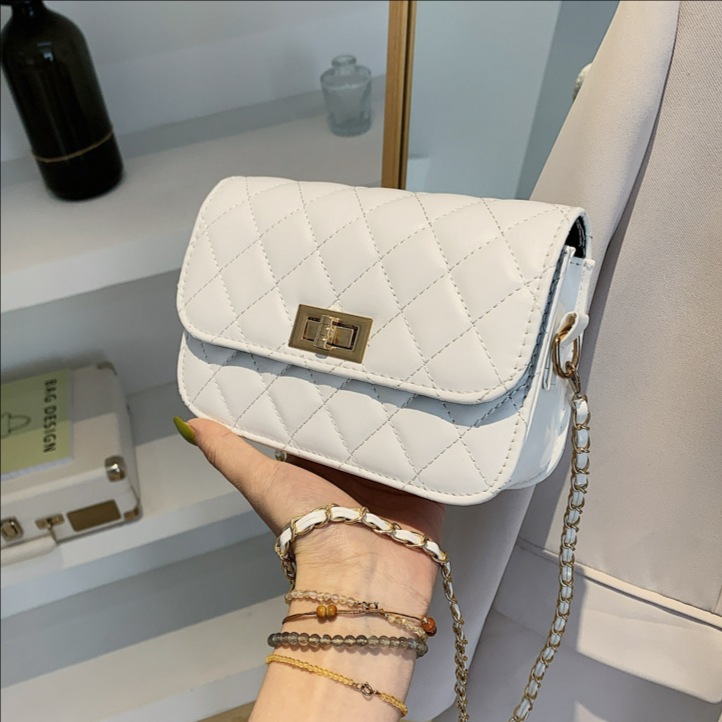 菱形模様の無地チェーンミニスクエアバッグ 2026夏新作 トレンドファッション シングルショルダーバッグ シンプルでスタイリッシュなクロスボディレディースバッグ