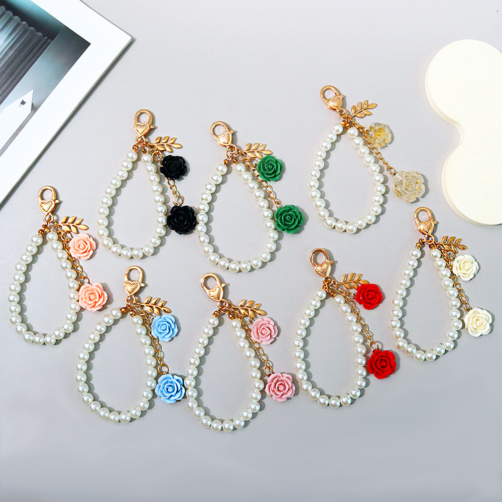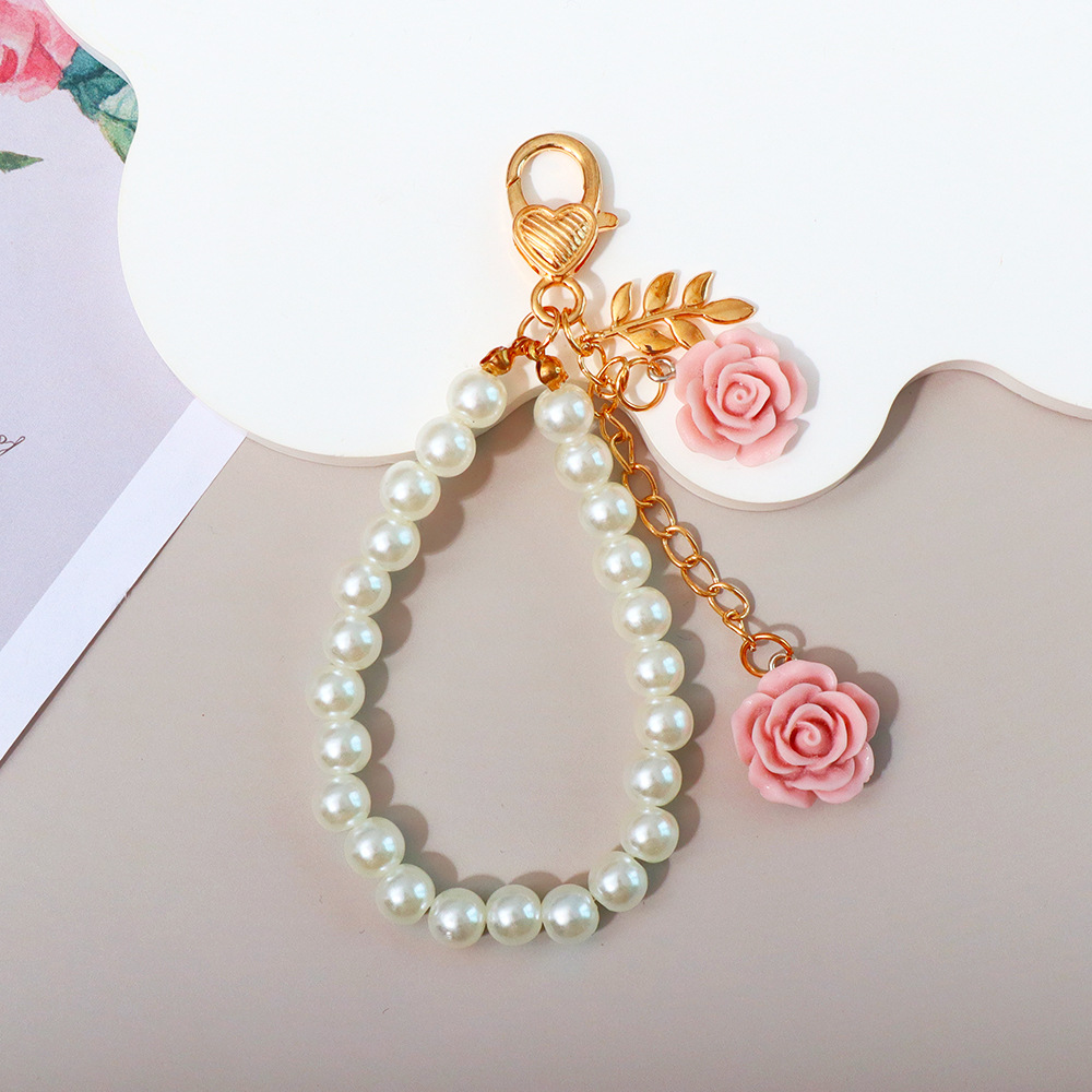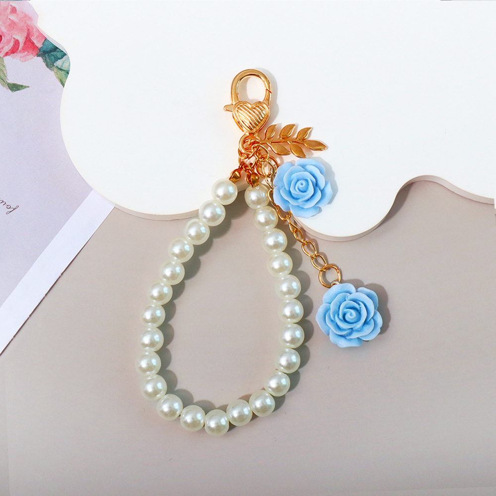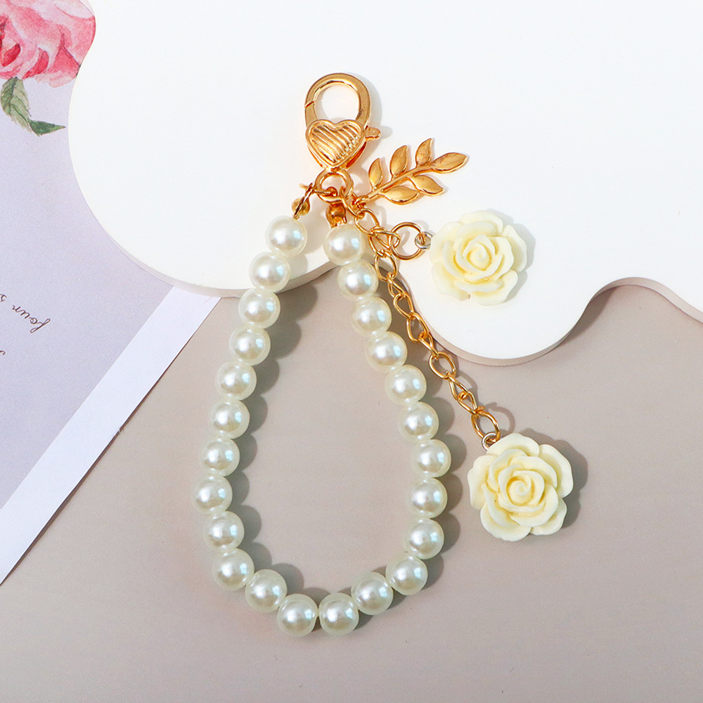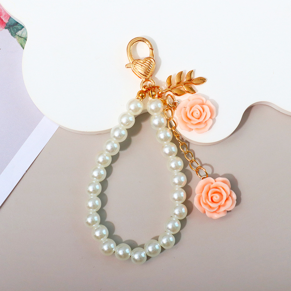 INS風2色花真珠ペンダントキーホルダー少女紛失防止ビーズストラップ